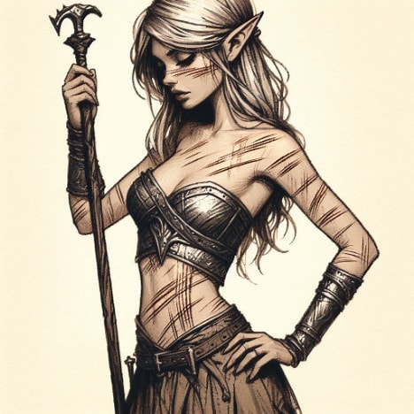 (2)Description: Made of fine steel, this long sword is a masterpiece of co-craftsmanship between the dwarves of Lairn Mountains and the elves of Lairnstead Hollow. The straight (at their insistence) Dwarven lines of the blade and hilt belies the grace this weapon achieves when wielded. A swan and her wings cup the wielder's hand in a mithril embrace, with a diamond in the center of the guard, above the swan. The hilt has eel skin wrappings to absorb sweat. The pommel has been shaped into an into an acorn and was blessed by Saleia, Legendary High priestess of Corellon LarethianSide effects from useAfter: 11 years-Heal 1/day, ego=825 years-owner gains 29% magic resistance, ego=1050 years-invisible to undead, 10' radius, ego= 13After 50 years of use, the owner of Spellsinger acquires a strange taste for roaming the seas and seeking out exotic magics heard of, even if the dweomers are in faraway lands (Intense Wanderlust)"Once a common blade amongst Grey-elven royalty, there is only one Spellsinger now known to exist. Known to be wielded by Danees Dayguardian in his last battle against the evil hordes of Smoke Mountain" ~Tren the ChroniclerSaleia was an NPC based on my youngest daughter
