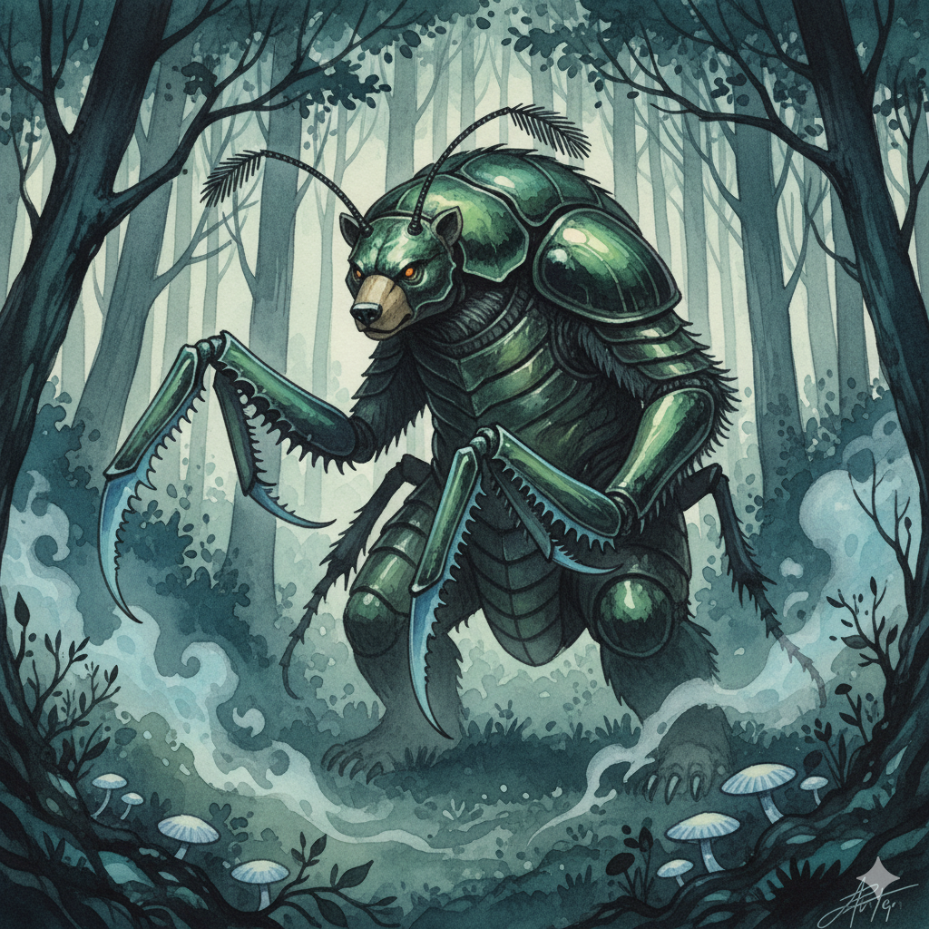 >>97742423>>97742424BingoThis is more or less what I see when I read "bugbear". I was about to do something like a beetle with bear's head, but wasn't really sure about the results.