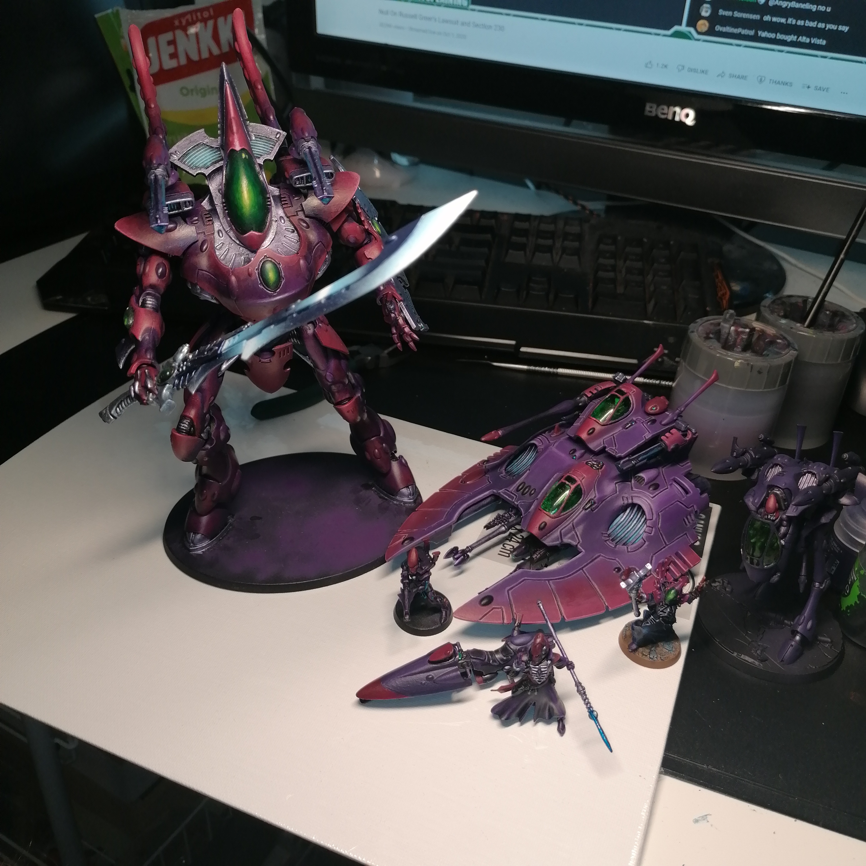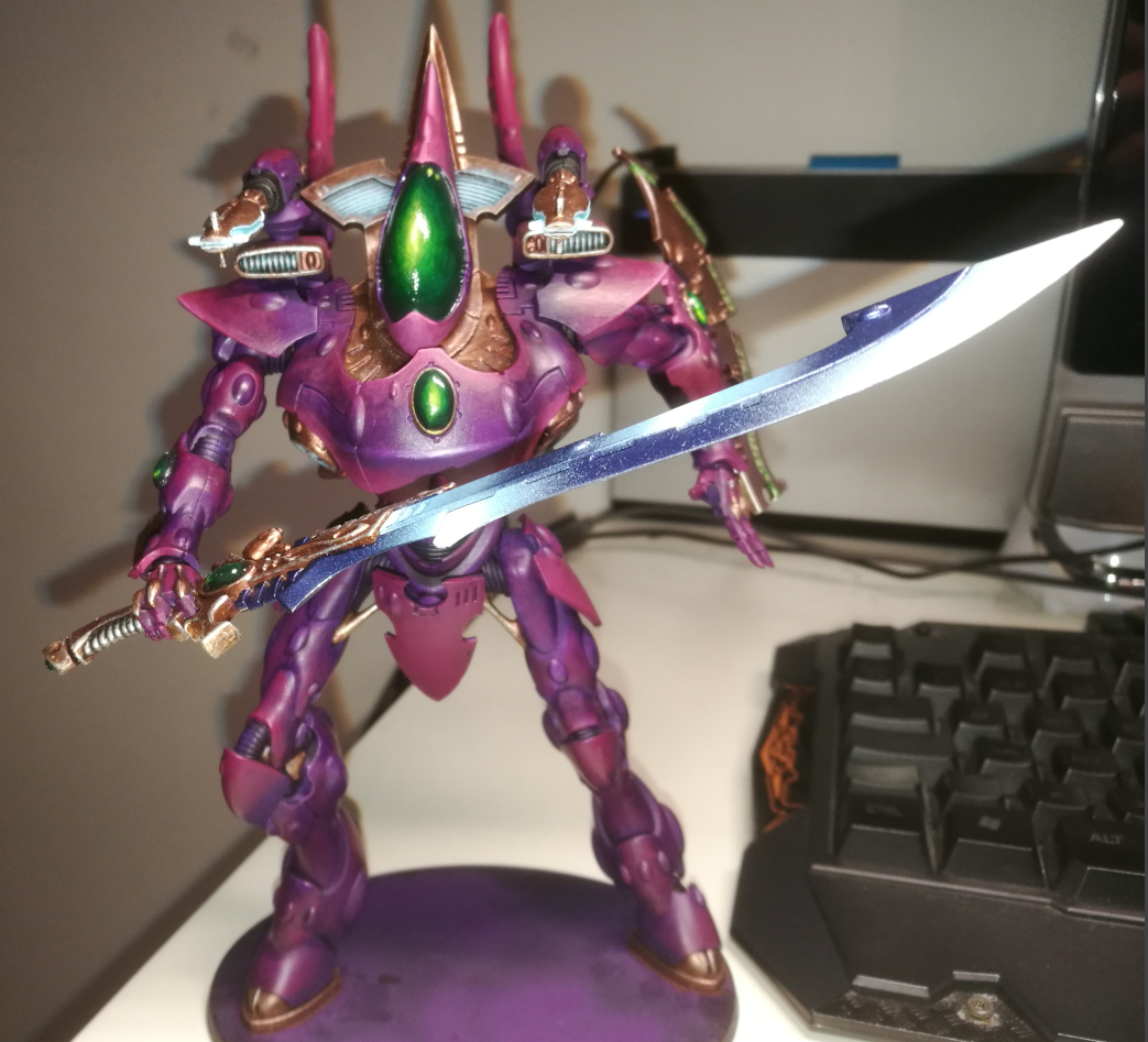 >>97724194I kind of lost the energy to work on my eldar because I grew unsatisfied with the custom color scheme I had for them, but at the same time I was too deep into sunk cost of painting big models in that scheme like the wraithknight here to really rework it. I can't figure out how to make the scheme work for me.Part of me is tempted to just start over fresh and make a Biel-Tan themed army.