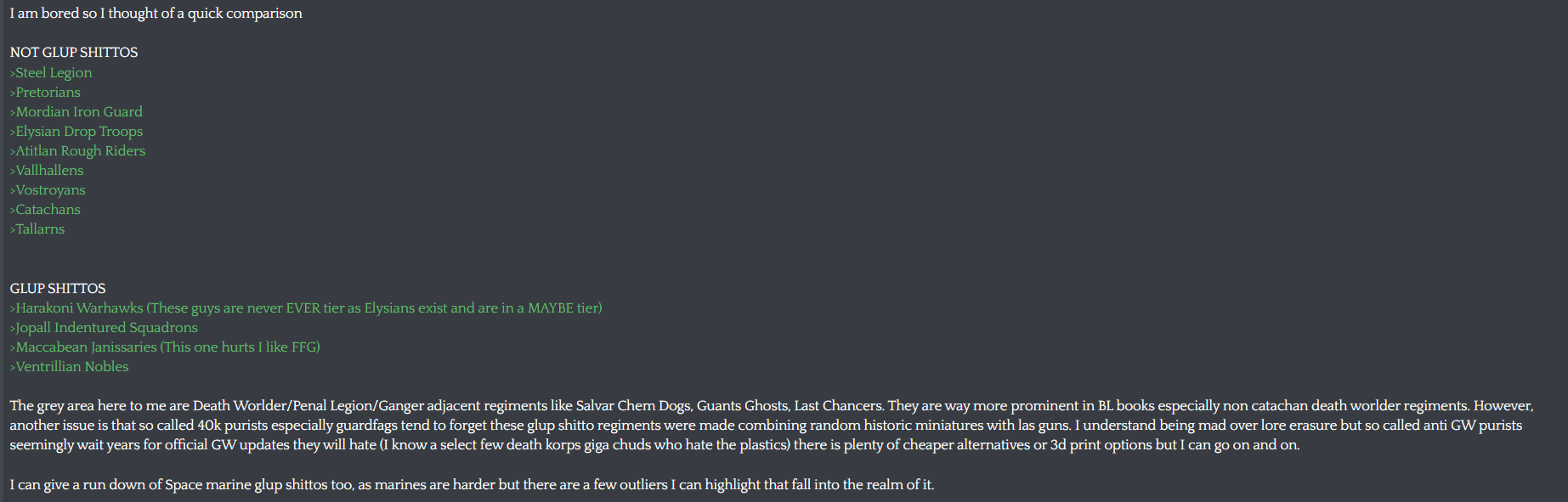 People who like guard have the most fucking boring tastes ever I swear to god. Half your shit is redundant and you are probably the reason why primaris marines exist.