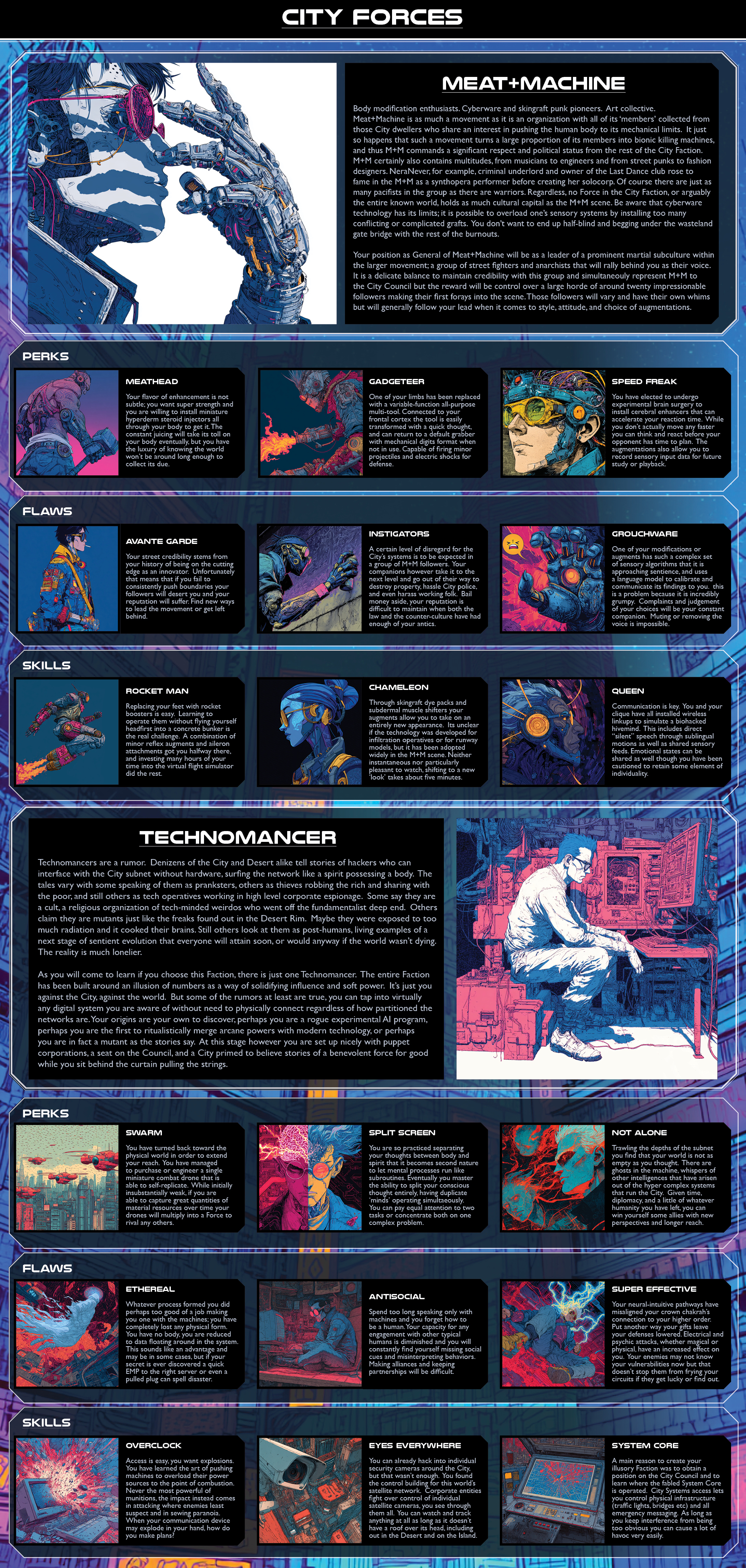 Psionic abilities. Extrasensory things, all brands of kinesis, some mind upgrades.