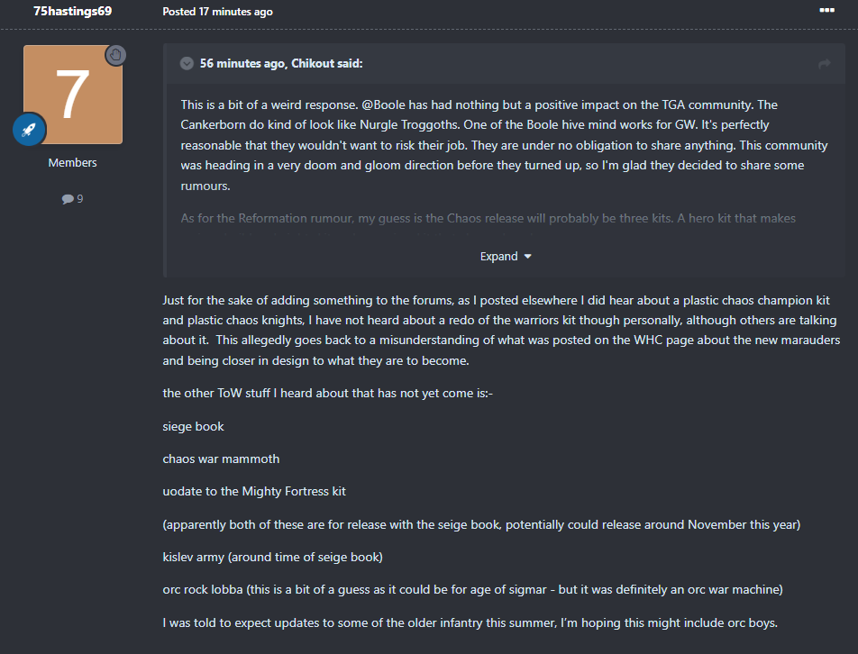 An actual reliable rumormonger did post and say there are a bunch of new core plastic kits coming for various armies in the summer.