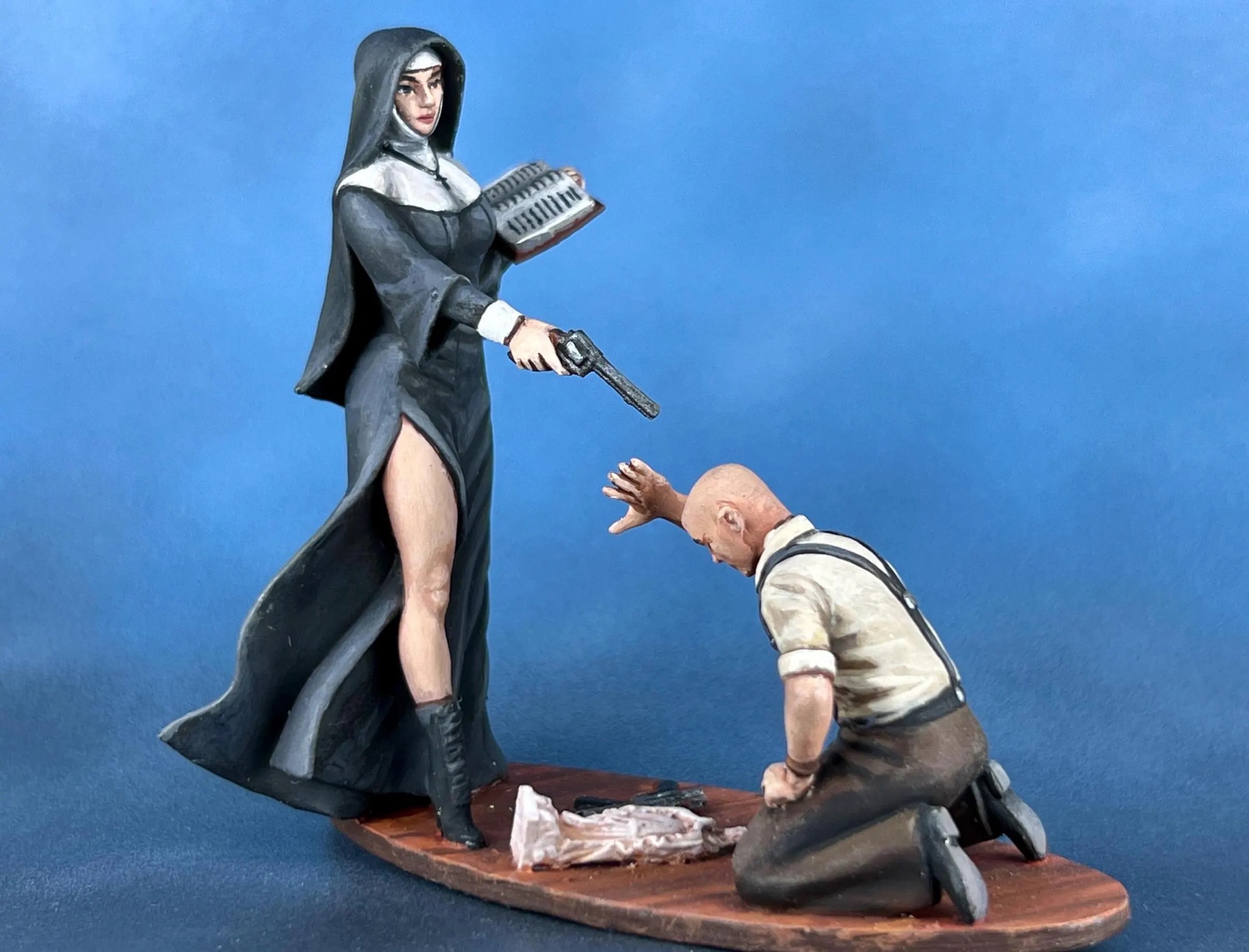 >>97751553Wheelers. Worshippers of the son of the Architect, broken on a wheel not a cross by the ancient now fallen elven empire. They have weird hats, pointy noses and strange rituals. The Orthodox Wheelers are Catholics. The various Protestants, levellers, diggers, etc. are Breakers, using a damaged wheel to symbolize their distance and break with the centralized church. I make up random saints in various towns as needed, drawing on various notes taken from here and a few tables. I've also just looked up what saint's day it was that day of game and riffed on that. Most villages are up to some sort of local festival that's tied to older rituals but reworked to be Wheeler based, like a Grave Whisper day where every family nominates a member to sleep on an ancestor's grave and hear their wisdom, demands, etc. Satan and the forces of hell are The Antagonist. Pagan stuff that's been pushed back into the woods, hills and borderlands worship various Antecedents and Antediluvian monstrosities. There's not muslim/ottomans to the east doing their own conflicts with occasional incursions. Whole setting is roughly 1500-1600s mashup of things I like.