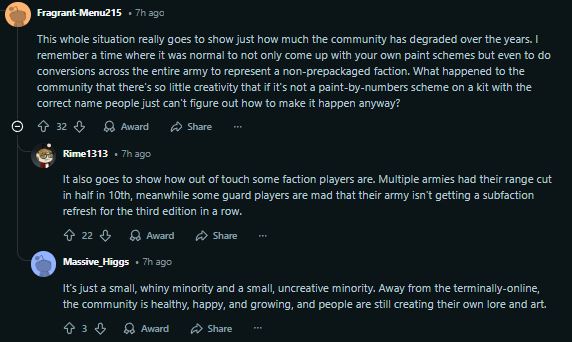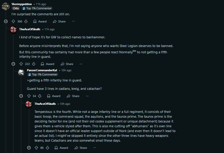 >>97743827I have no idea unless they are being sarcastic. All I know is that this fucker wants GW to ban people from the hobby who are upset about Steel Legion. It just gets worse and worse
