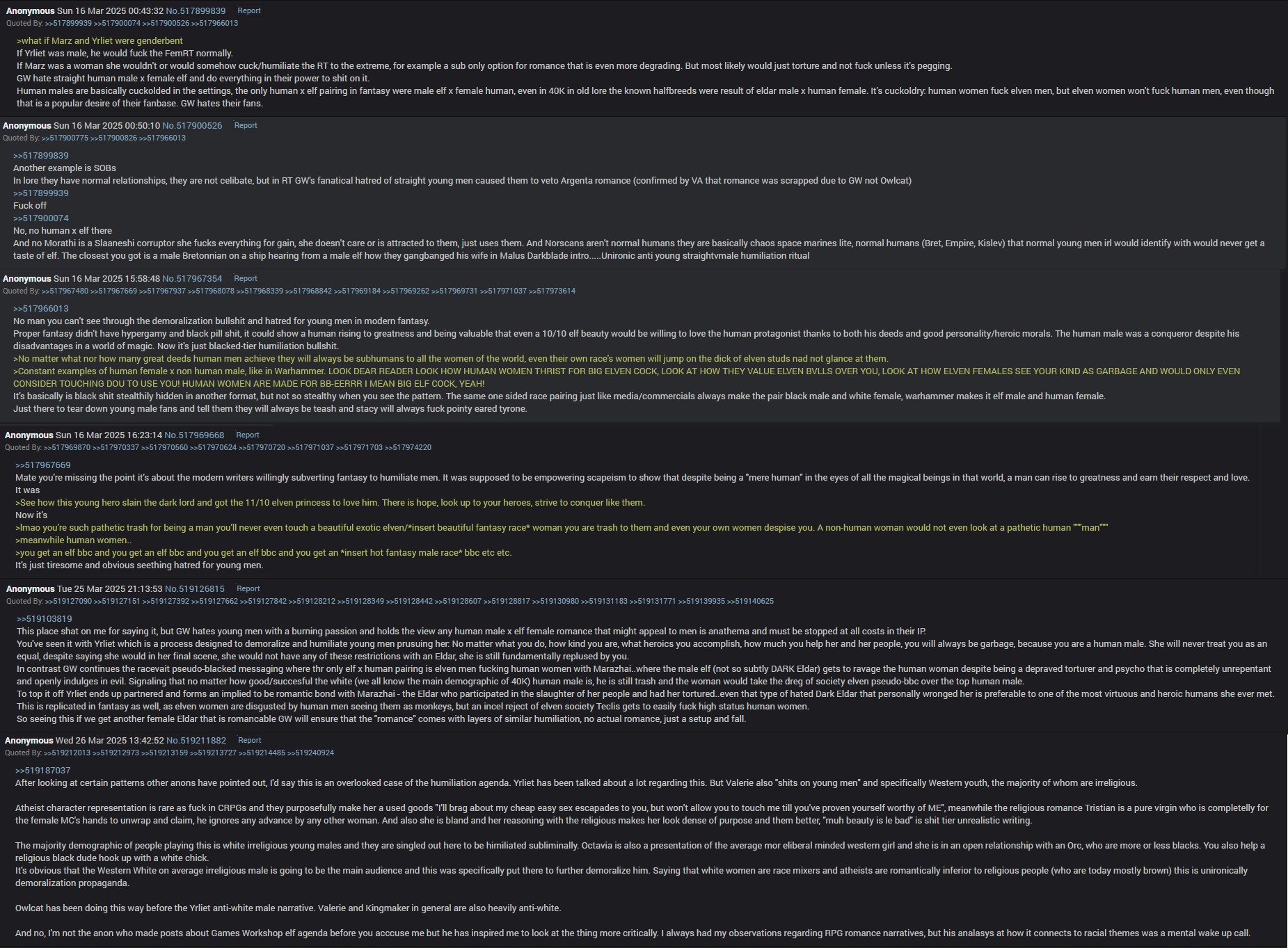 >>97743820These faggots are literally going into the fantasy thread and spewing this trash there too. Wish this shithole had moderation that actually enforced the site rules.