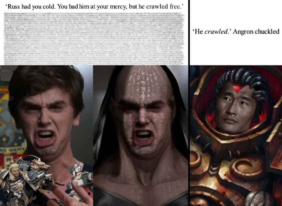>said by someone who threw a shitfling and demanded that people never say bad things about space wolves an hour ago
