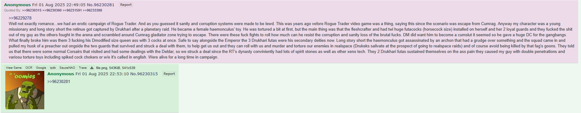 We WERE having an enjoyable /40kg/ thread until you decided to chimp out AGAIN over people disliking space wolves. You're just so allergic to blame and accountability that it exceeds woman behavior.