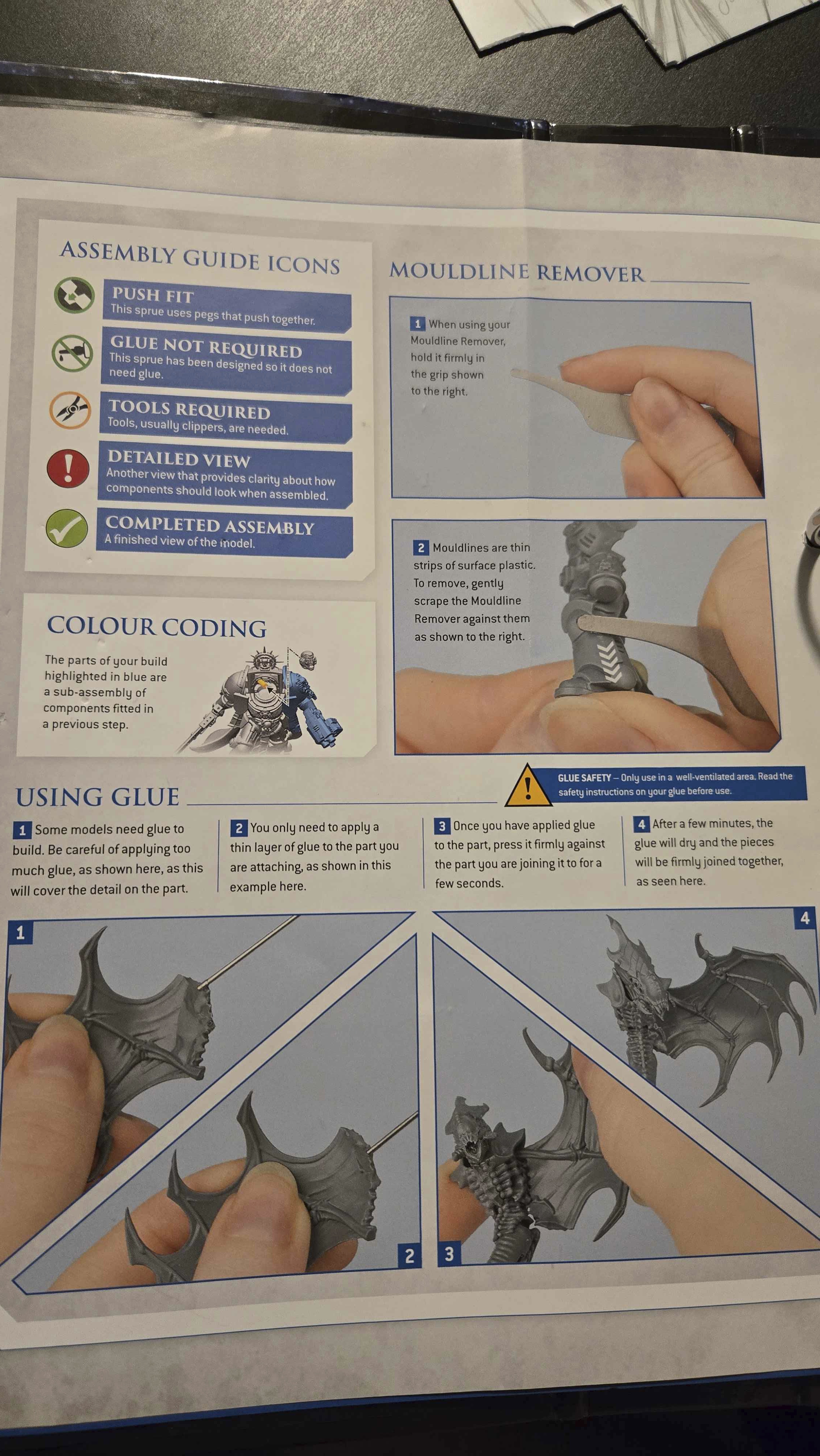 This is one of the first pages from the first issue of the Combat Patrol magazine. In it they show you how to use the basic tool set that get delivered to you a few issues later. As you can see, they showcase the very simple and straightforward technique of removing moldlines from a model kit. Again, this is not an advance painting technique they're showing off halfway through the 90 issue magazine run, this is Issue 1.