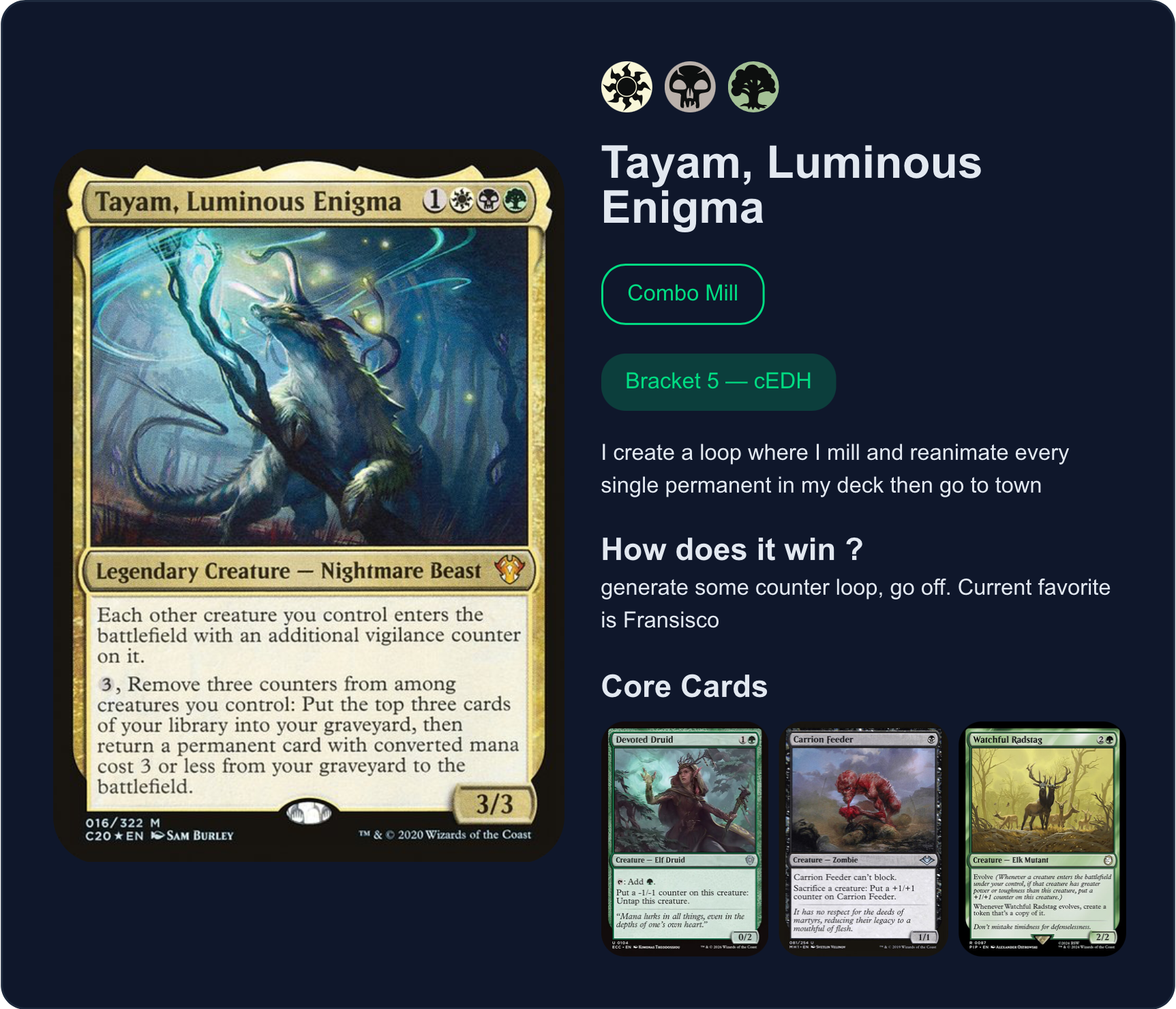 >>97767711>runs lumra in the 99 instead of the cz just to say "it's not the cedh build so it's not consistent enough and is good enough for lower brackets"more reason why a blanket combo turn threshold in b3 below regardless of consistency is best, it covers these kinds of angle shooting