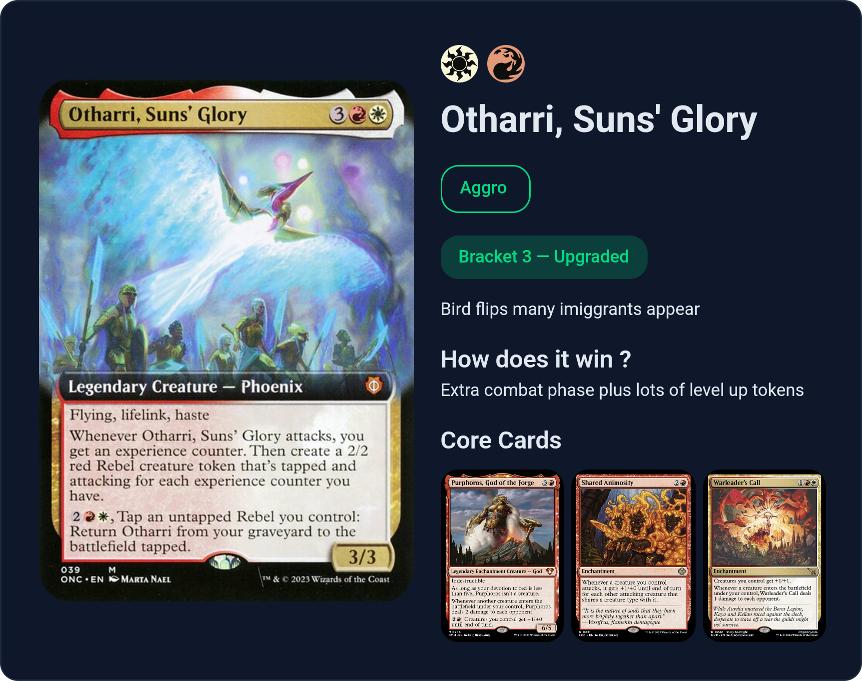 >>97766208Fucking A, anon. That's a much better way of doing "threaten tribal" than I did. I chose these two and I steal commanders, hit with them, then ideally sacrifice them for bonuses like card draw/removal/whatever. While I do have the backup of stealing bigger threats on the table, the deck quickly "runs out of gas" in a way by having zero commanders to steal due to their commander tax getting way too high to cast anymore (the deck is built around commanders/legendary creatures attacking/dealing combat damage). I'm definitely doing your deck though since I already have like 70% of the idea built, now I just need to pick up Herigast and some big doofuses to cast. I'll just share the cards between the two decks
