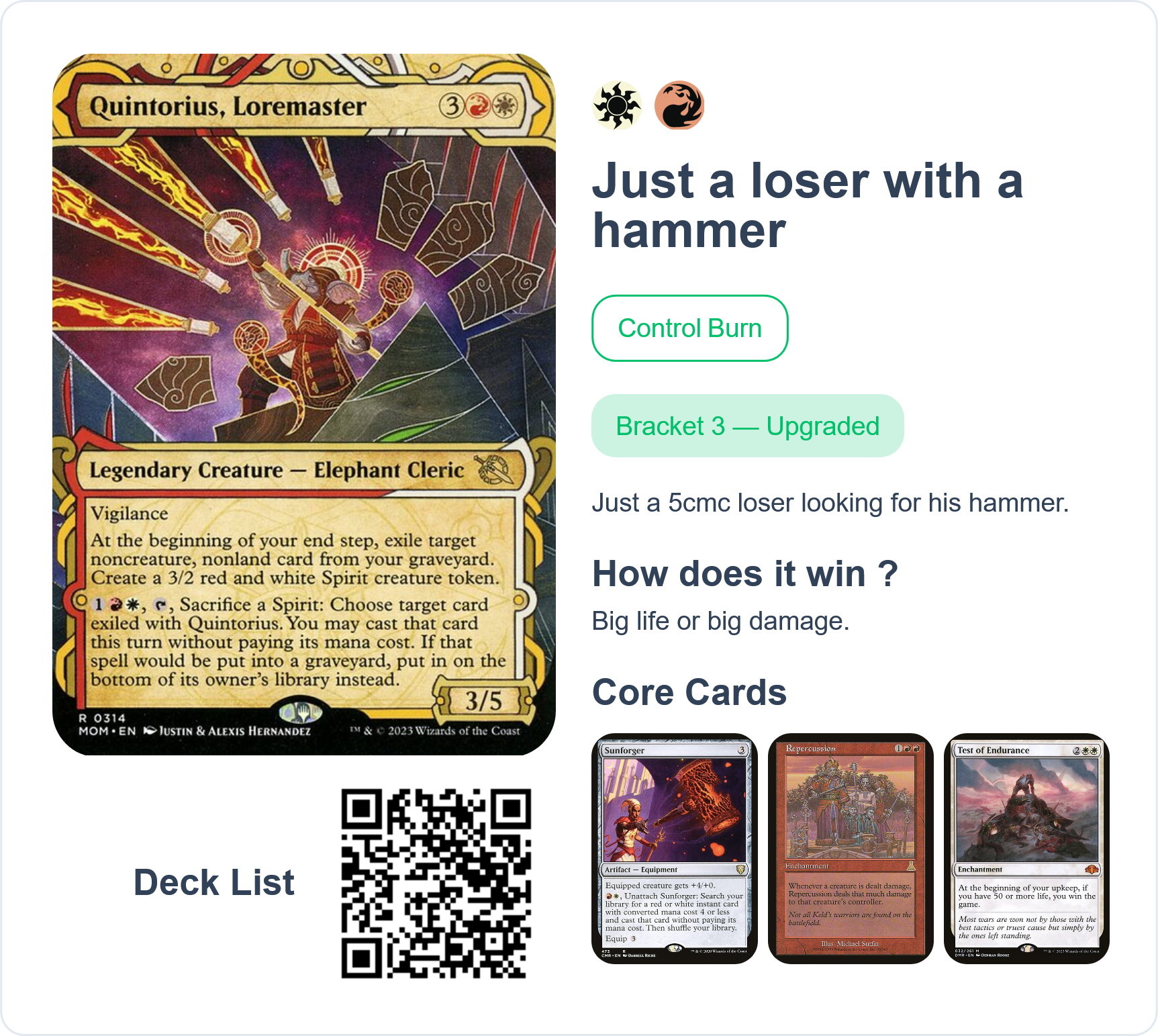 >>97767791He'll slot right into either of my other two Quintorious decks just fine