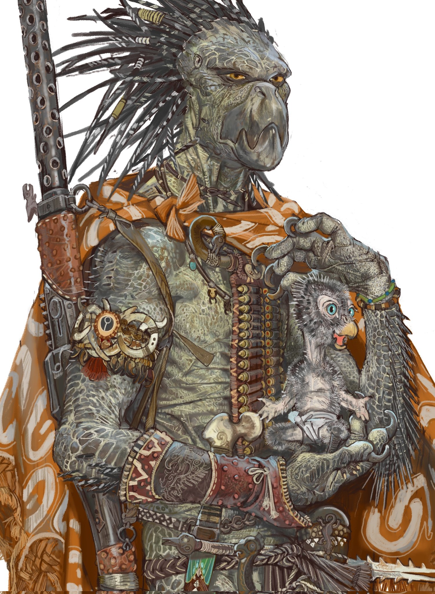 >>97758715Unfortunately most people are boring and Warcraft-pilled now and just play orcs as alternate humans without reckoning with that legacy of sin and pain. Or you get that like essentially racist WotC art where the Orc family are just Mexicans lmao.