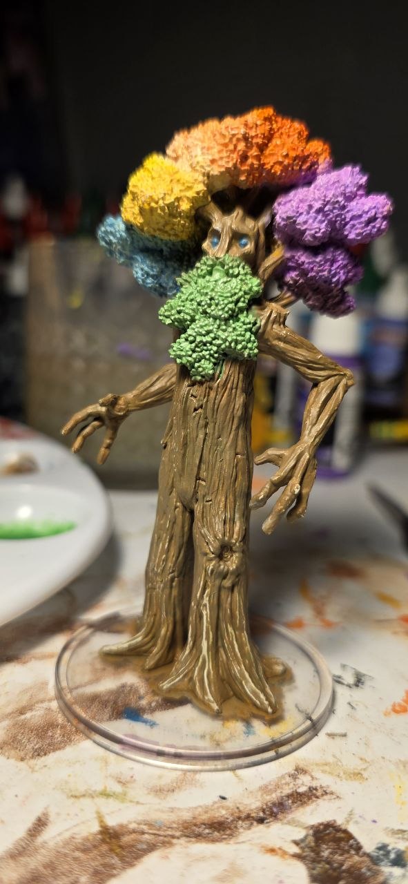 >>97765671Added another layer of color and pastelified them a bit more + added some deep shading near where the branches meet the leaves. Also applied some ODG wash to add a nice weathered, aged moss look to the wooden body. Obviously need to put on another layer of wooden brown at the legs. I have learned that the "pre-primed paint-ready" minis in the Nolzur's Marvelous Miniatures line can definitely use a nice pass of primer regardless. Condolences to the Anon that fucked up his hand in the collage. (and thankz 2 collage-Anon desu)