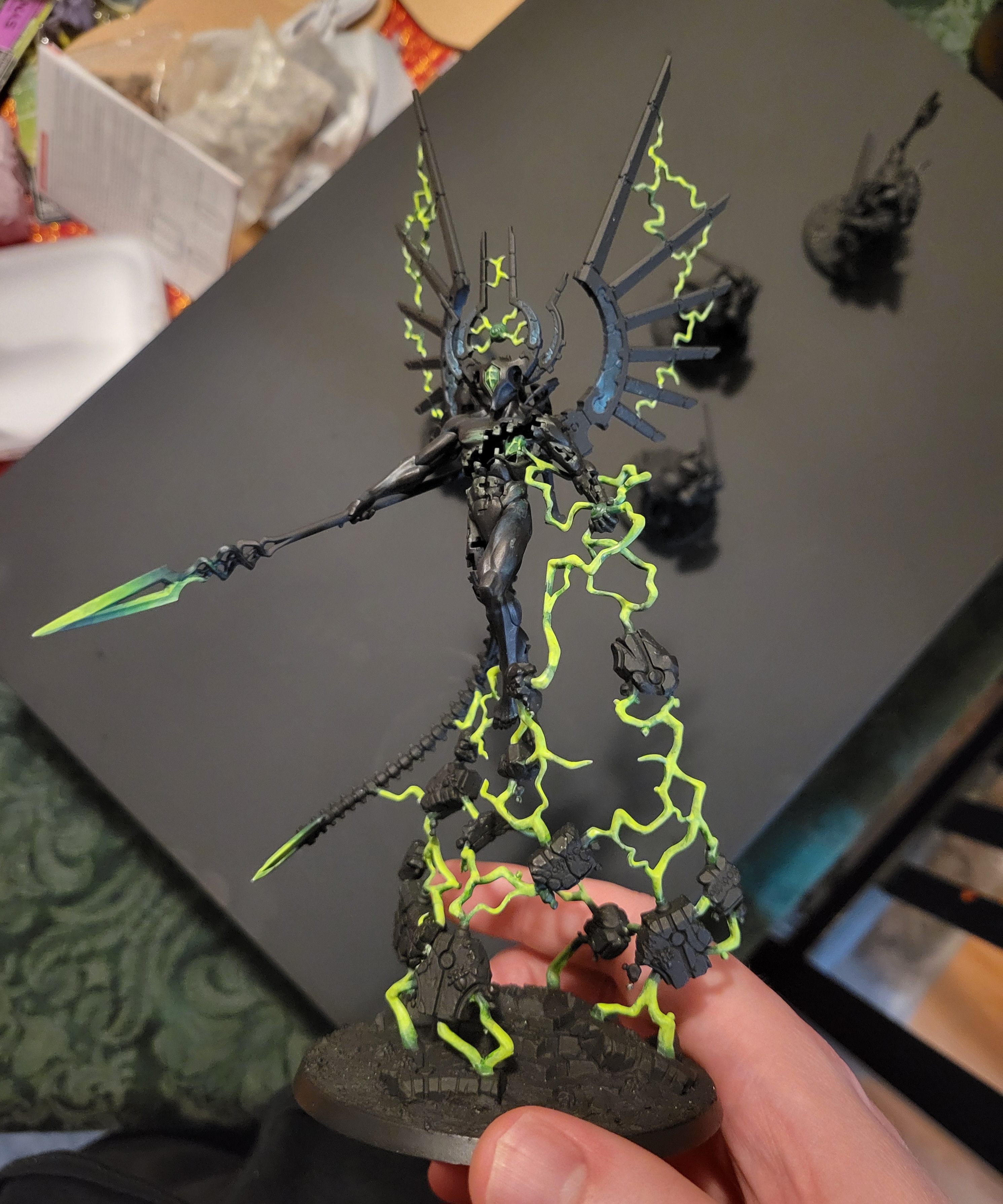 >>97770923>I like the red one more because it contrasts better with green.That's what I was thinking too. It's my personal choice between the two, though I'd have to repaint my doomscythe for it.>That said the body and metallics kinda blend togetherShould I consider a particularly dark gunmetal or bronze instead of what I've currently got?