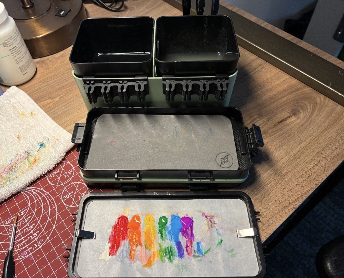 What do you use to wipe your brushes? I'm having a growing issue with tiny dust fibers getting stuck in my paint. I have a growing suspicion that it's lint coming from the kitchen paper towels I use.