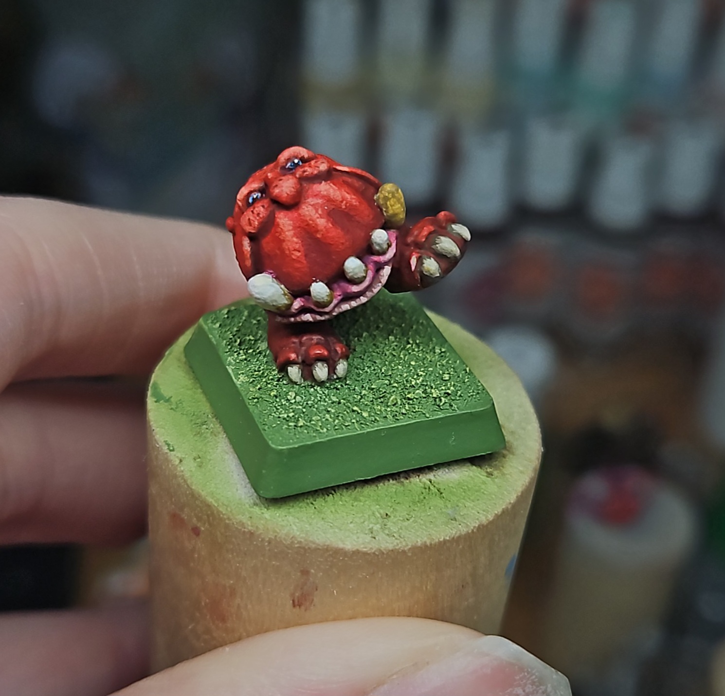 >>97773367Very happy with how the Clown Ent is turning out. Picked up some of the new John Blanche sets and the hyper-saturated colors + muted forest tones have been working wonders. Not done yet but he is getting there.