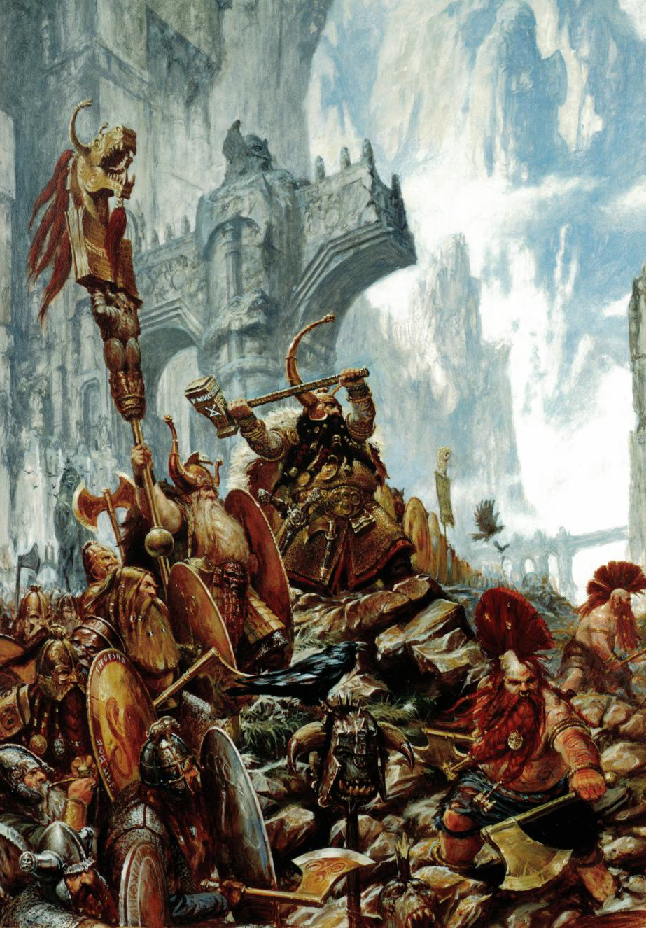 TQ: Not a dwarf guy but I love this one. The giant keep in the back and the even bigger mountain looming over everyone. I love mountains in general and would love to trek that area.