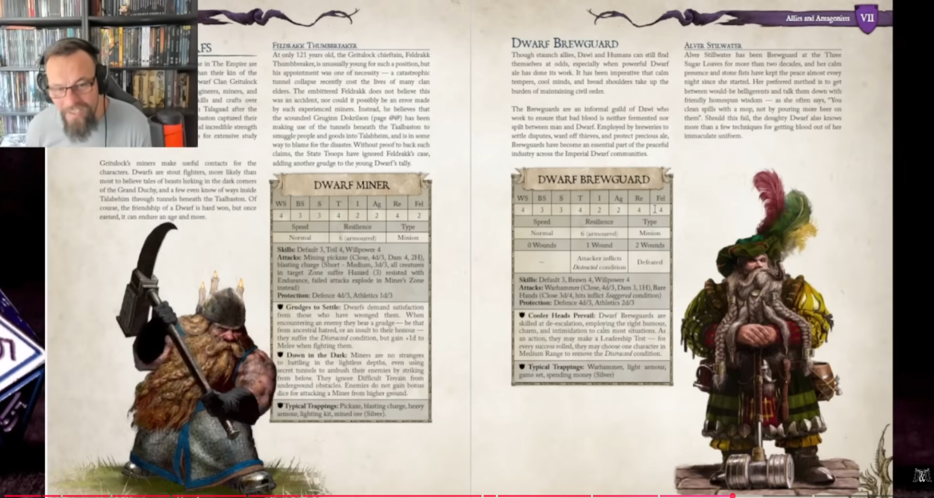 >>97769163This probably isnt all that important to most of you, but one thing I like about the old world rpg is that I feel like its more of a direct analog to the wargame in terms of stats. If I know a character has a 3 weapon skill that means they are a very average combatant, 4 means exceptional and 5 essentially superhuman. Then the skills give you sub increments between those degrees. 3 weapon skill with 3 melee skill makes you an average fighter, 3 weapon skill with 4 melee skill makes you better than average, but not to the extent of a knight who has trained most of his life and has a 4 weapon skill.I especially like the paired down NPC blocks in the game master's guide, they look like a good shorthand to stat out a character's general gist. I am going to be playing a little solo scenario using them and post about it latter.A little fantasy that I have is having a family of systems where you can easily transition from army fighting (old world rules) to group fighting (mordheim rules) to individual fighting (old world rpg rules) using essentially the same stat blocks for the same kind of units.