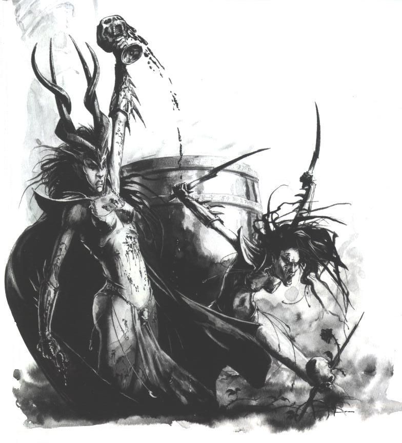 >>97782093Big if true.DE are literally the only legacy faction that HAS to come back. For many reasons.1. You can't have High Elves without Dark Elves, because their lore is too intertwined.2. It's the only elegant evil faction. All other evil factions are more or less mindless, angry barbarians (orcs, beastmen, chaos warriors, even skaven). DE are different. Aescethically they are absolute top.3. Half of their army are naked hot women. I mean DUH!Skaven, ogres, daemons, lizardmen, chaos dwarfs, even vampire counts may never return, bu DE are A MUST.