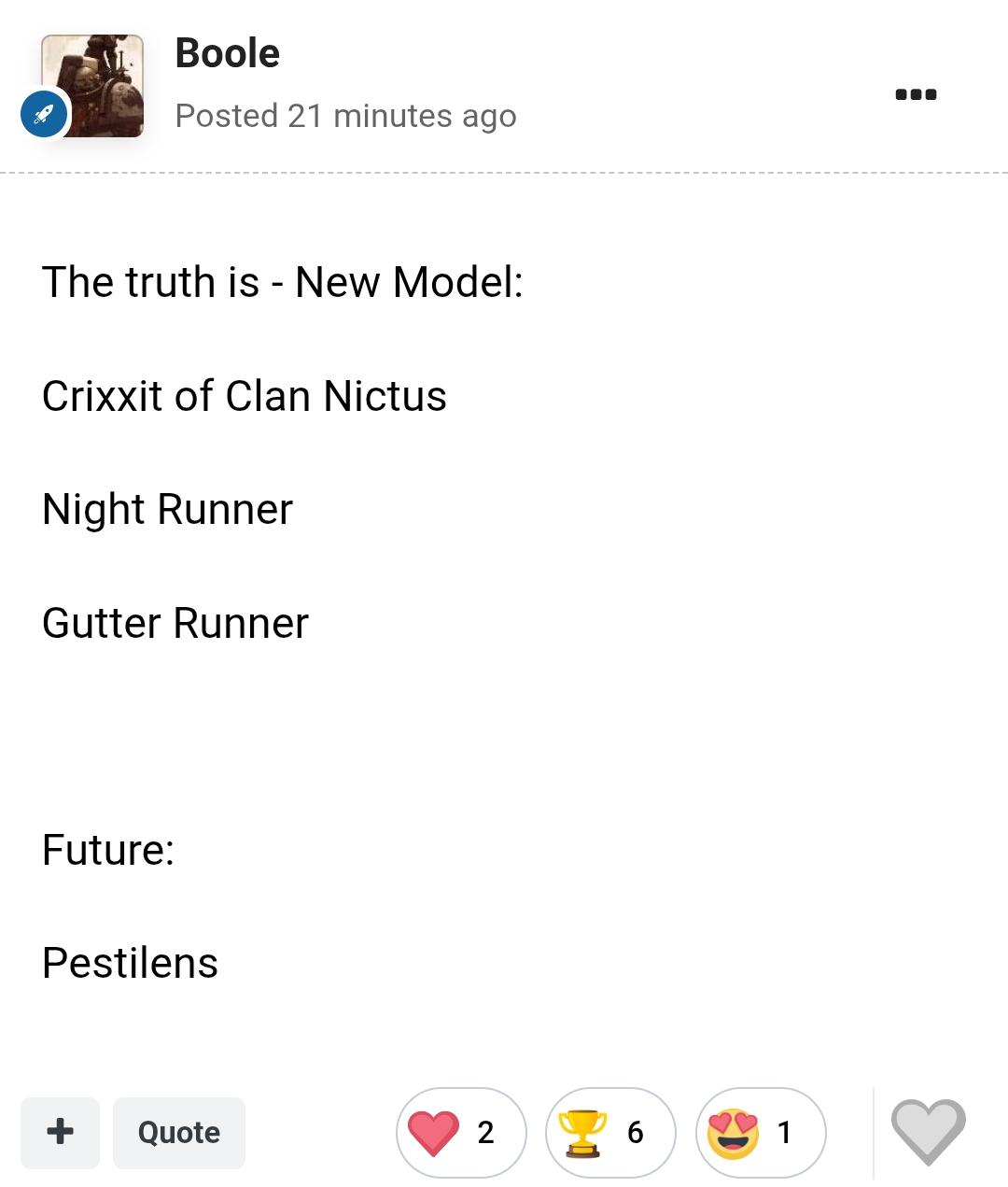 >>97773844I'm down>>97773850They'll have to give up at some point. I don't think this will be quite as big as the custodes debace, but I'm sure it won't be too far off either