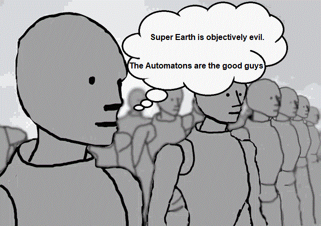 You're the type of mfer that plays Helldivers and thinks the mass murdering Automatons, whom turn entire cities into something straight of Terminator's Future War, are the good guys because Earth is authoritarian.