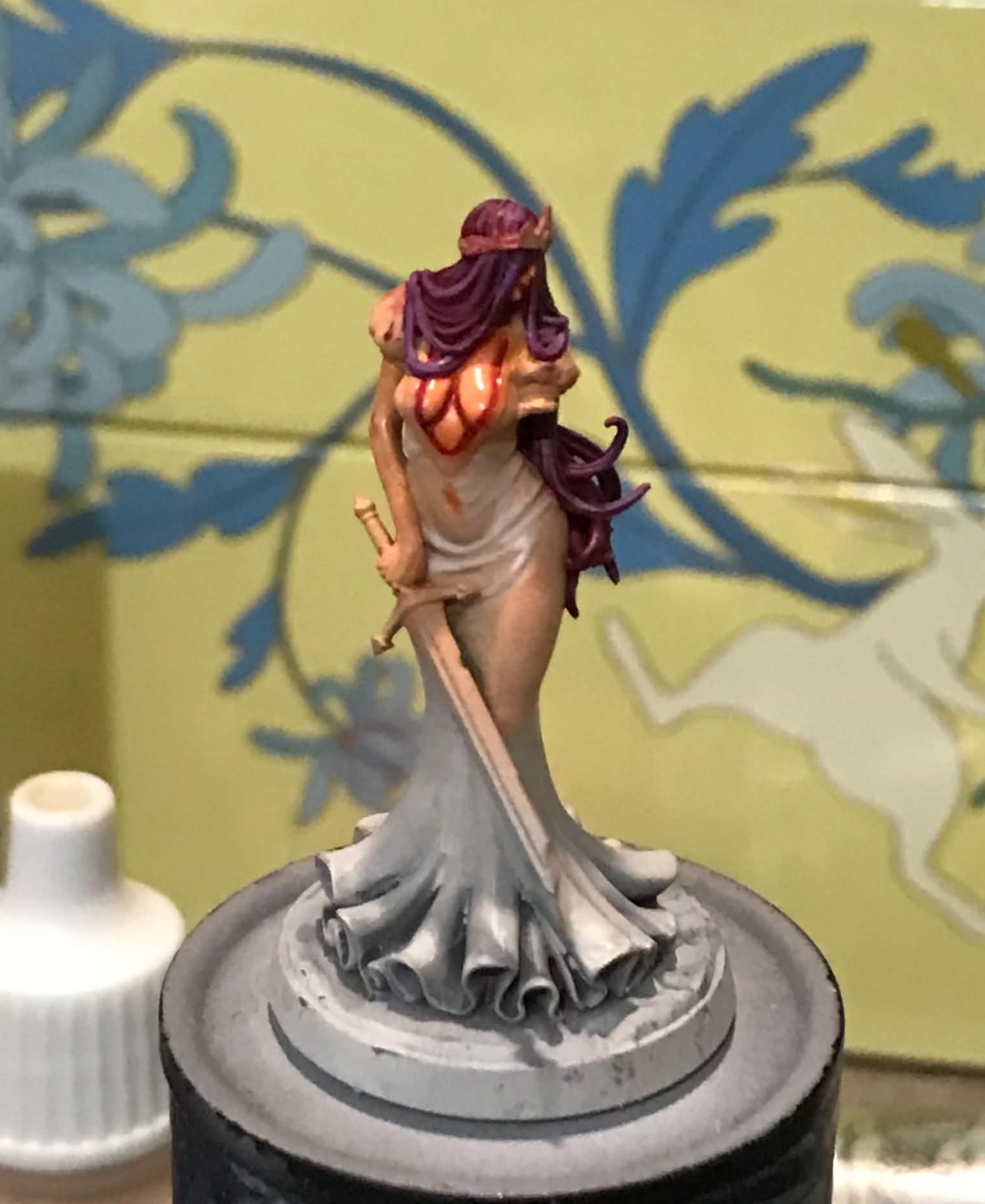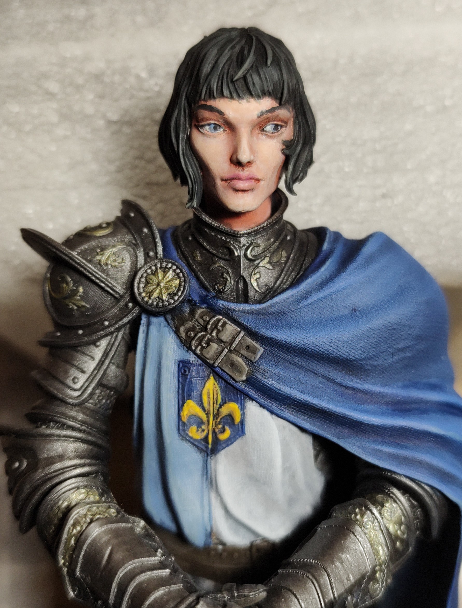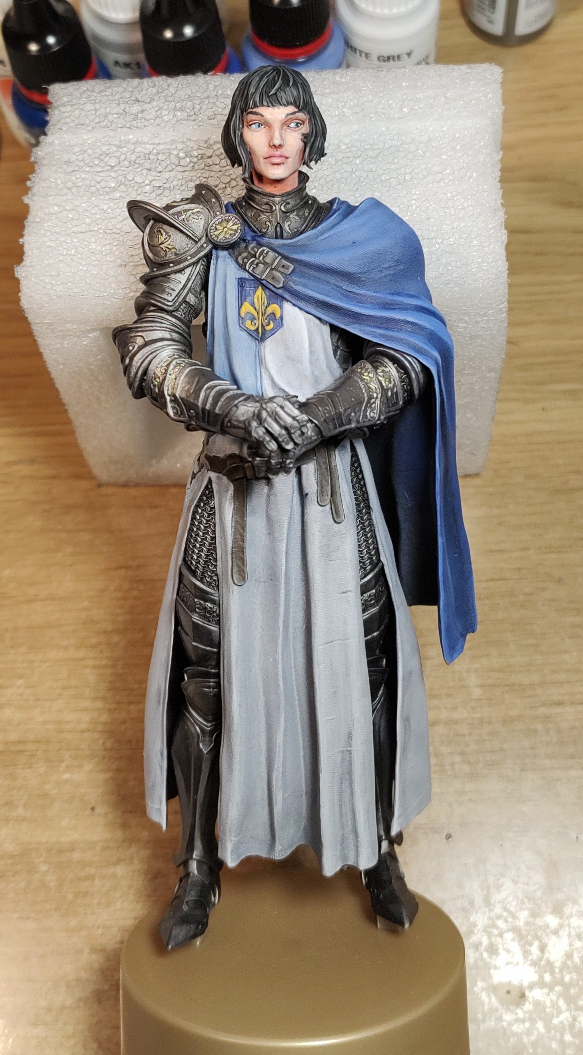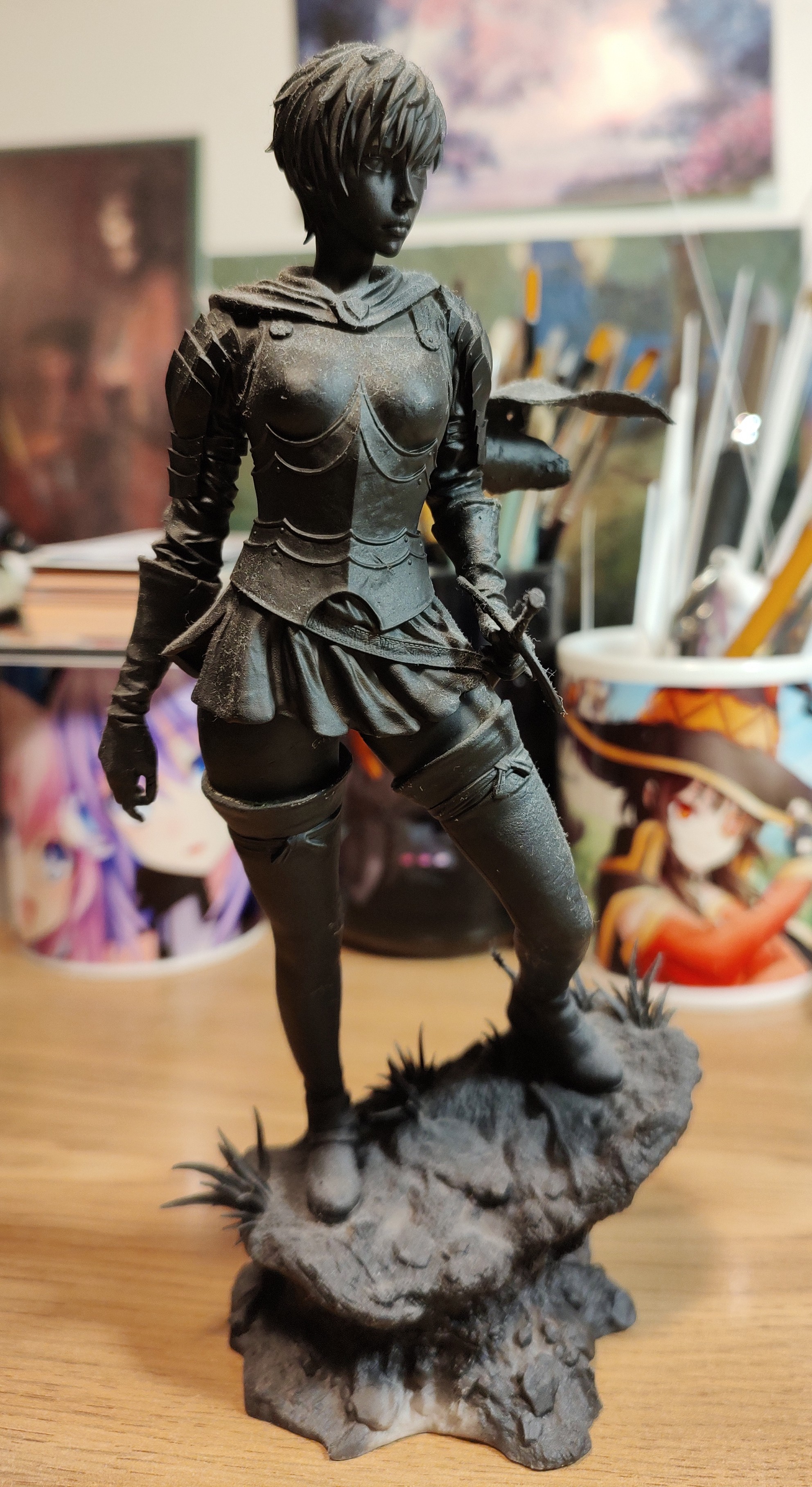 Cannot get her in proper focus on phone camera no matter what but lines on her cloak are way too thick. Overall broke her off pedestal, accidentally broke off her sword scabbard, her sword detached - so I better call her done, glue everything back and forget.No idea why people insist on phones "replacing normal cameras".