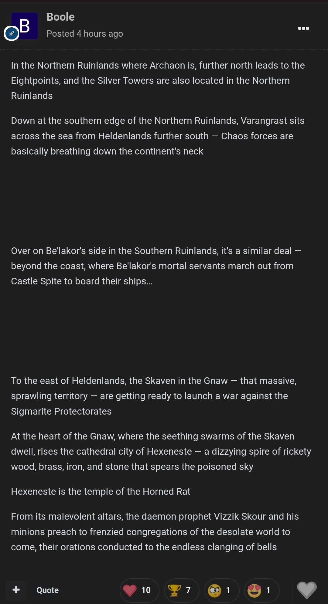 >>97817986they're axing the rain of corpses?honestly not sure how this is any better for anyone that didn't like the realms, they'e not going to be happy until it's just whfb or alternate earth