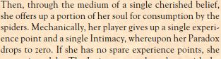 >>97898367>XP is a cultivation system, you refine small pieces of soul over time into Charms that result in an overall net benefit to your soul.The issue with that reading is that you can't convert charms back into xp, whether to deflect soul damage or for almost any other reason. Even if you lose prerequisites to charms (e.g. Essence) historically you would just lose access to charms until your Essence rose again, rather than converting them back into xp. As far as I recall the literal only thing that did it was Infernal charms in the middle of doing transhuman bullcrap.It seems more accurate to me to say that experience is kindling that feeds the flame of your growth. It is the water of the soul that rains down to nourish your skill tree.