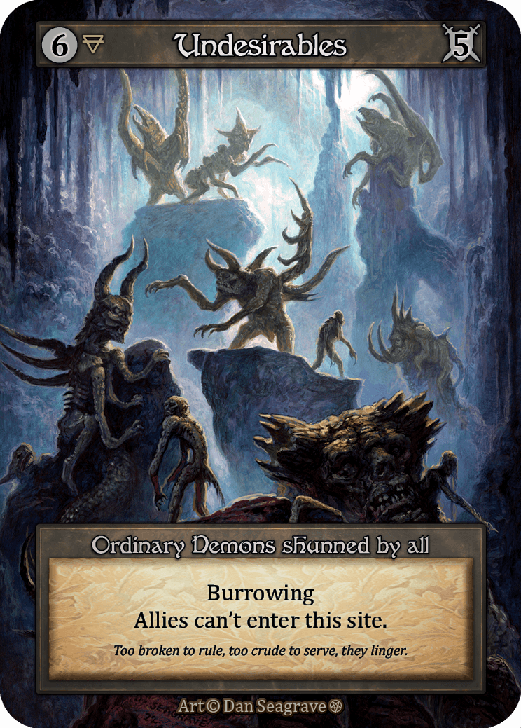 >>97820622Atleast in our city sorcery has been steadily gaining new players, with most being ex-mtg players or completely new to tcg hobby. It's either been the art or gameplay drawing people in. Ppl seem to enjoy the boardgame feel of the game with site placement and cards really affecting the realm unlike in some other games. Someone in the latest sealed event pulled this badboy and gotta say that flavour texts are so damn good in this game,