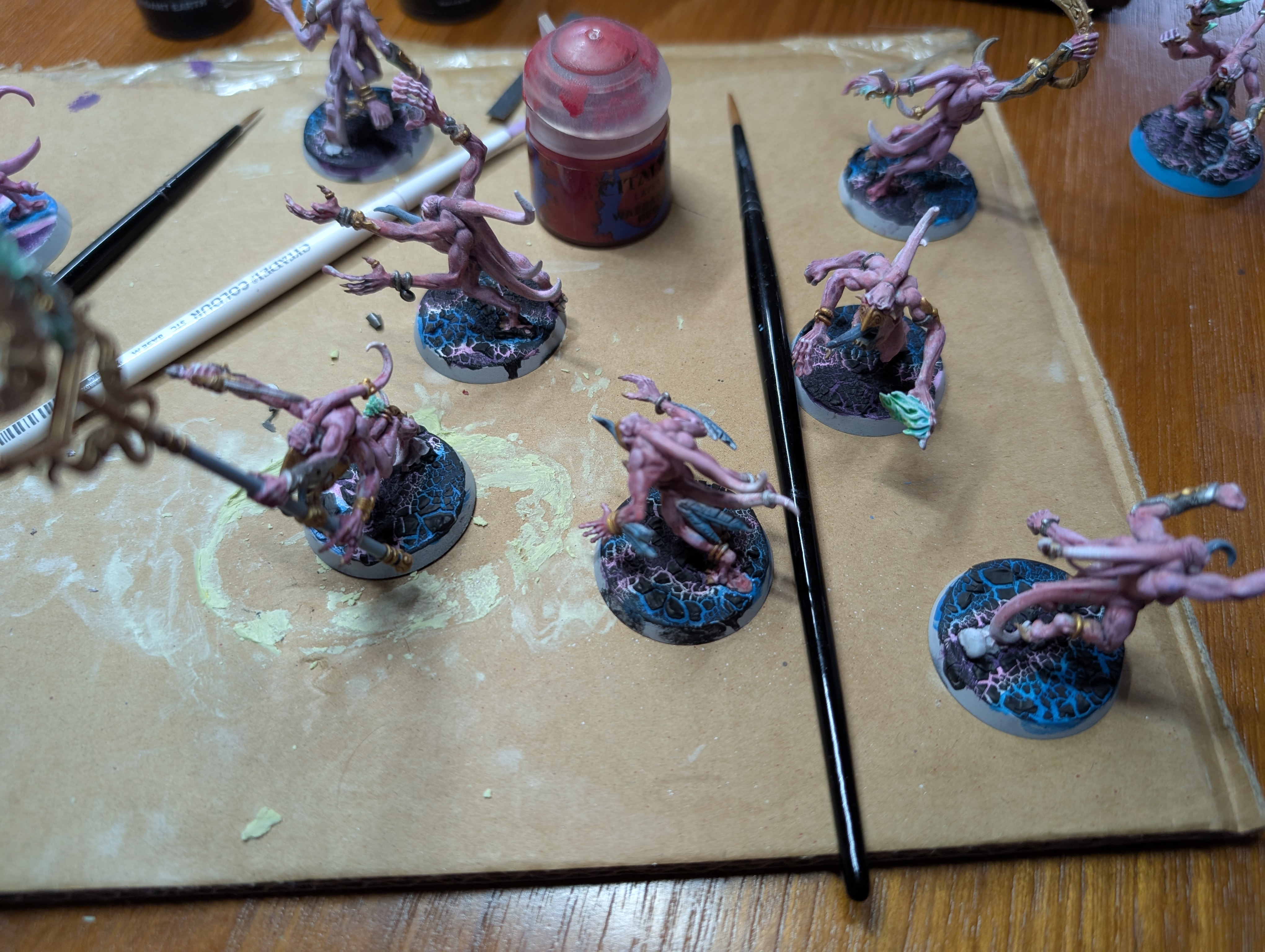 >>97821031Based my pink horrors a couple days ago, not had much chance to paint since then. Paint job on them was done years ago, don't worry about the terrible drybrush work lol