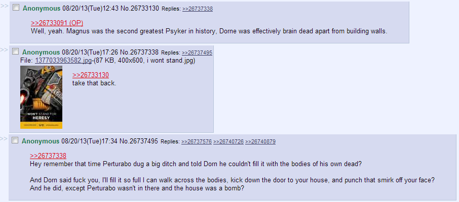>>97822223How many Primarchs do you still have, son of Dorn?