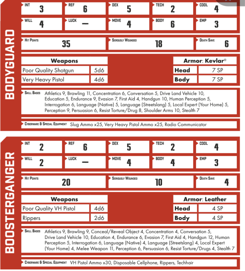 >>97884744There also the chameleon coating for FBCs; Honestly for a game called Cyberpunk RED, characters really don't ever feel like the transcend baseline humanity. There's not even a RAW way to go beyond human limits for most Attributes.Some basic stuff like having a linear frame giving you a +2 to Athletics, and losing the limit to how far you can throw objects would go a long way.