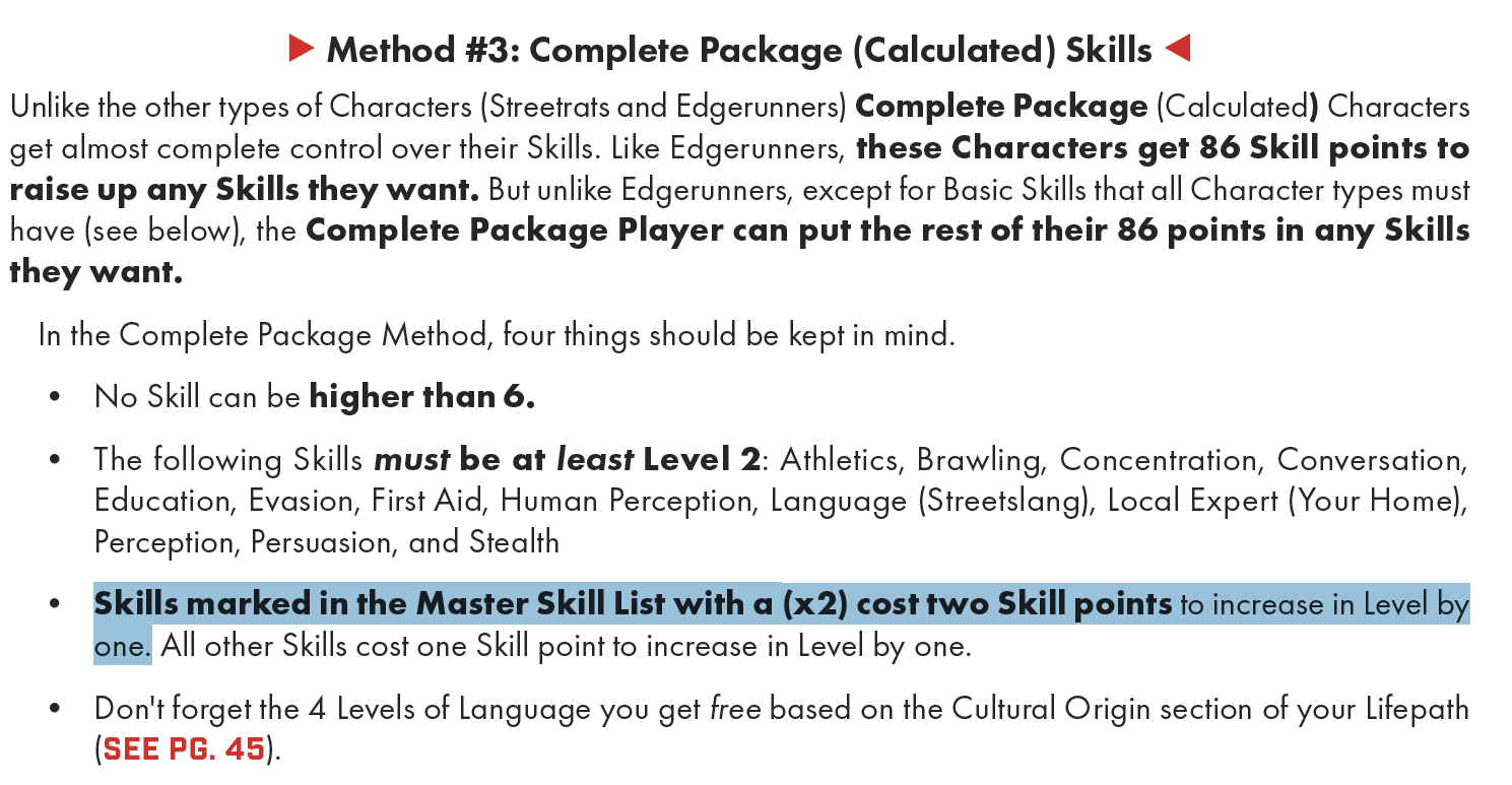 >>97842810Martial Arts isn't OP in the sense it's stronger than every other combat option, it's OP in the sense it's a stupidly good min max option that the player is heavily incentivized to take if they want to roll any sort of combat build. Say you want to make an Autofire or Heavy Weapons guy, you're gonna need a Linear Frame for the end game gear, which means you may as well take Martial Arts too. Martial Arts is also the only way to break free of the monotony of Red's strict action economy and get some cool powers. Also splitting up skills into x1 and x2 is honestly just a shit design choice that creates more problems than it solves. Rather than trying to give everything parity, some skills need to be better than others to justify their IP cost (see Martial Art and Melee) and x2 skills that are under powered (like Autofire) feel extra shit. What the game defines as x1 and x2 seems pretty arbitrary too. Brawling and Athletics are probably just as impactful as Martial Arts and Heavy Weapons, with a similar level of damage output and more utility.