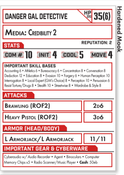 >>97868367lawman just sucks. I think there have been more posts about how lawman sucks than there are flys on shit. terrible flavour and doesn't even make sense in most situations a crew will find themselves in. mechanically it's only useful if you're being flatlined in which case it's a life saver but it just isn't fun. I'd rather use media or solo or even exec to RP a piggy. backup could be almost fun if you play it as a ganger calling in his crew but it still feels bad. Would have much preferred something like authority