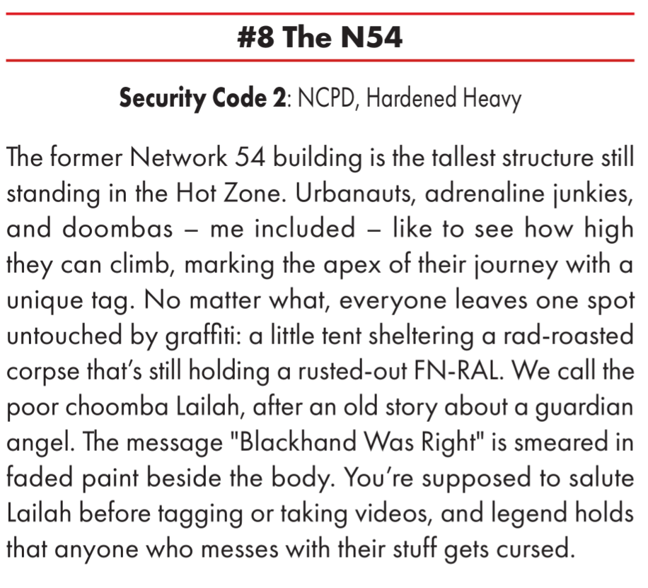 >>97910811The dead body on the old N54 tower was first referenced in the Reaping the Reaper module in Street Stories, but the other details like the "guardian angel" and "Blackhand Was Right" are new.