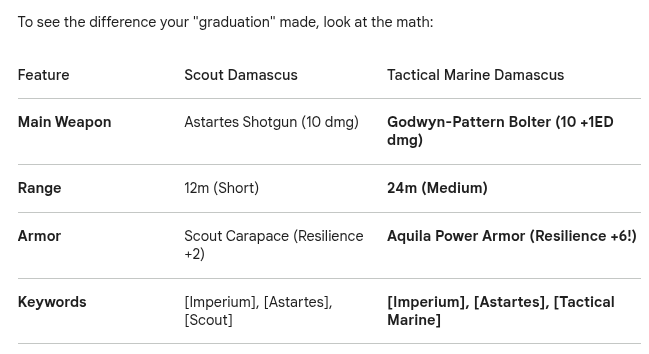 >>97943287Gemini also included a summary of what the promotion from Scout to Space Marine entails for my most immediate questions.