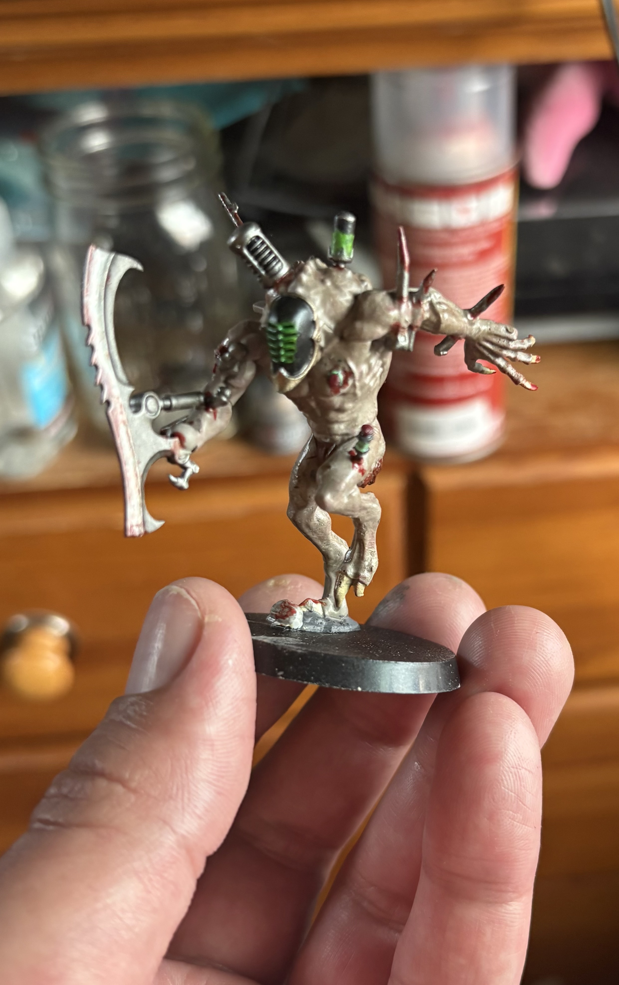 Yesterday I was venting about being overwhelmed with my 250+ deldars I had yet to begin painting. Well, finally had a day off and got started, somewhat. Got one grotesque down. Not the greatest, but it was nice to get my rusted hands painting again and I’m feeling better.