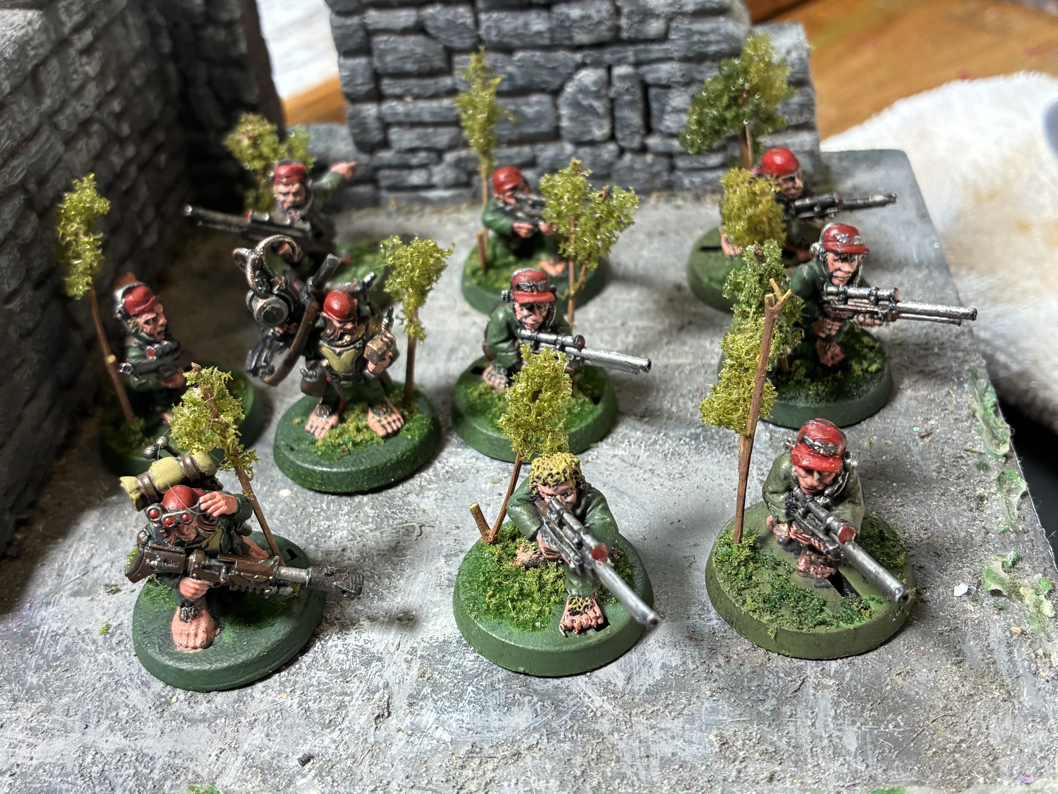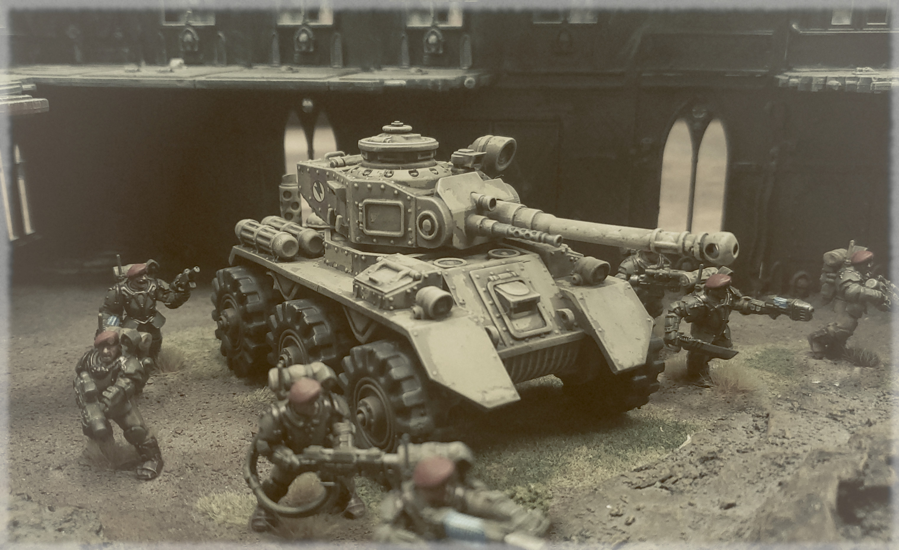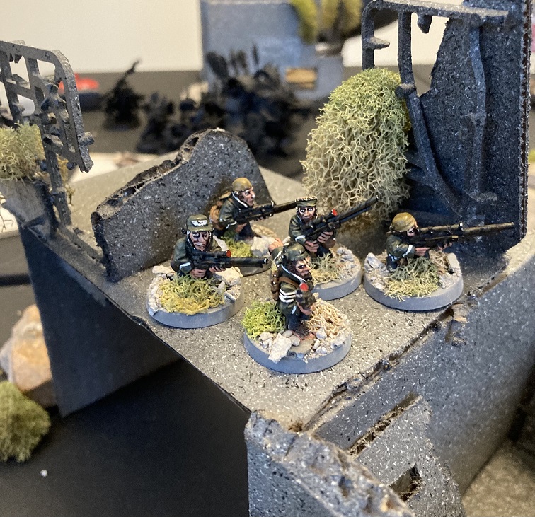 >Elements of the 633rd "One Percenters" Storm Trooper company hold a defensive position alongside Perceval 212, colourized.I miss Imperial Armour.