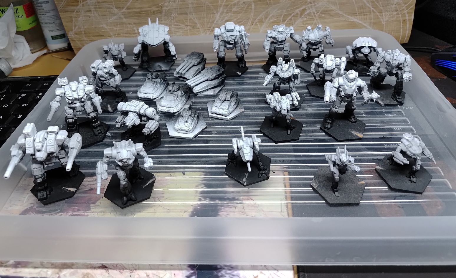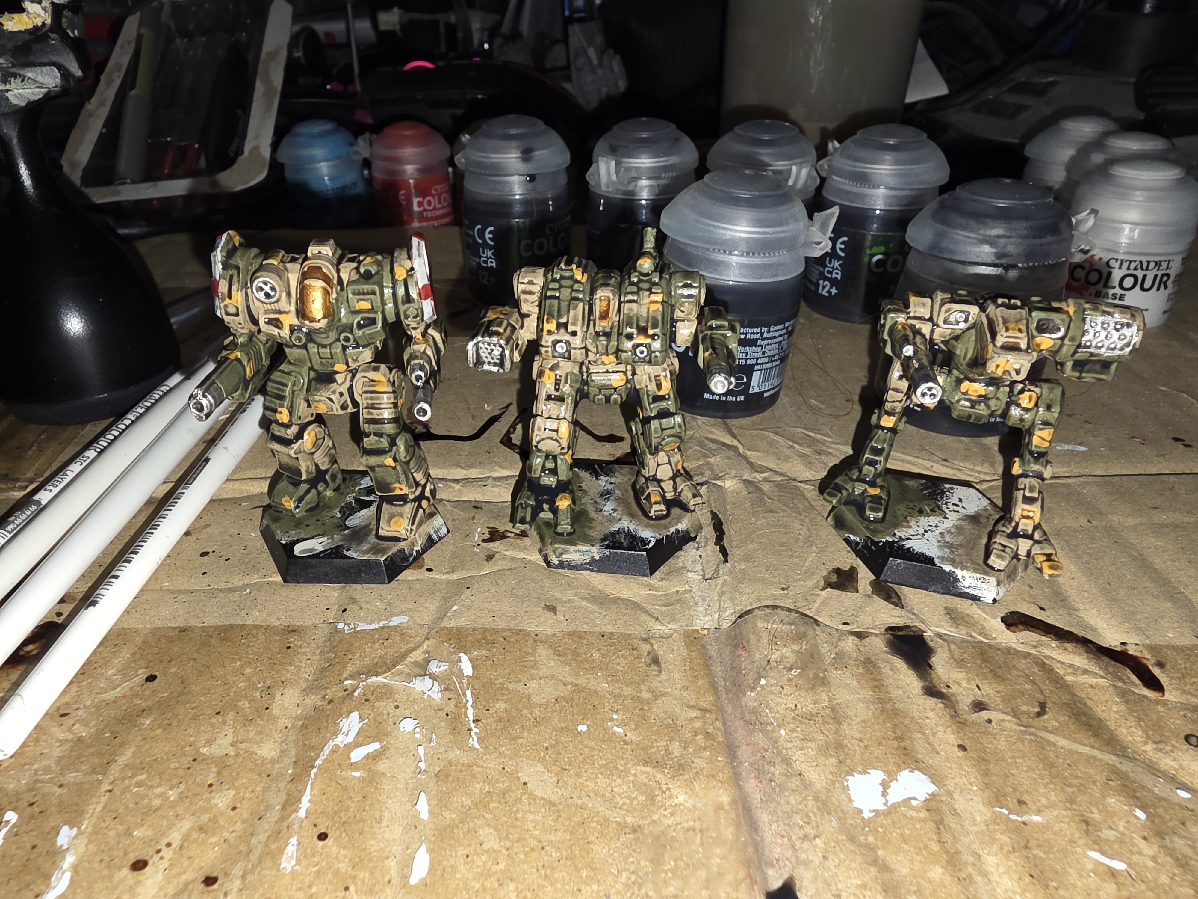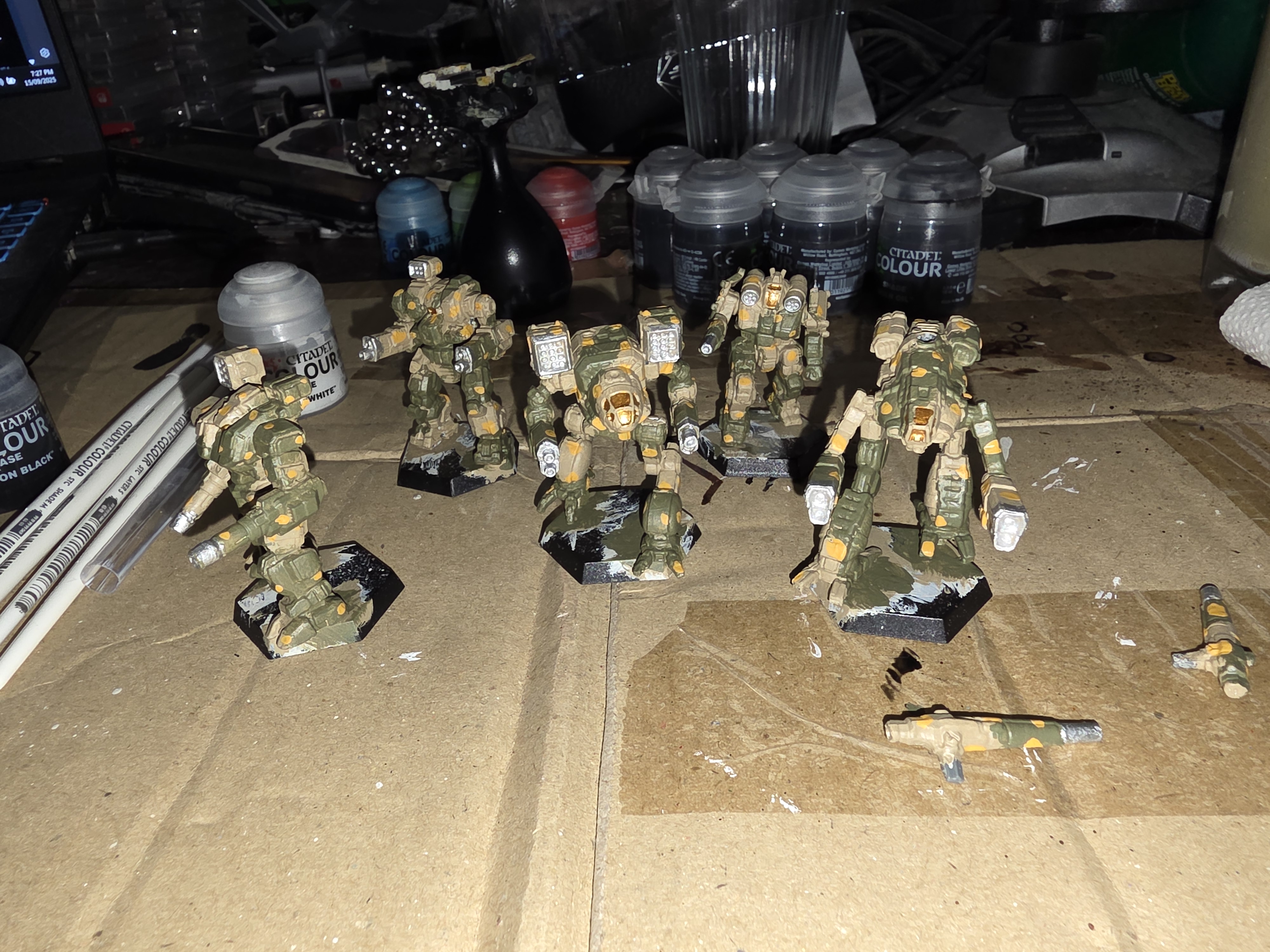 >>97844510Been working on some Arkab Legion guys for the past month.The only mech missing is a jenner still getting old paint stripped from it.