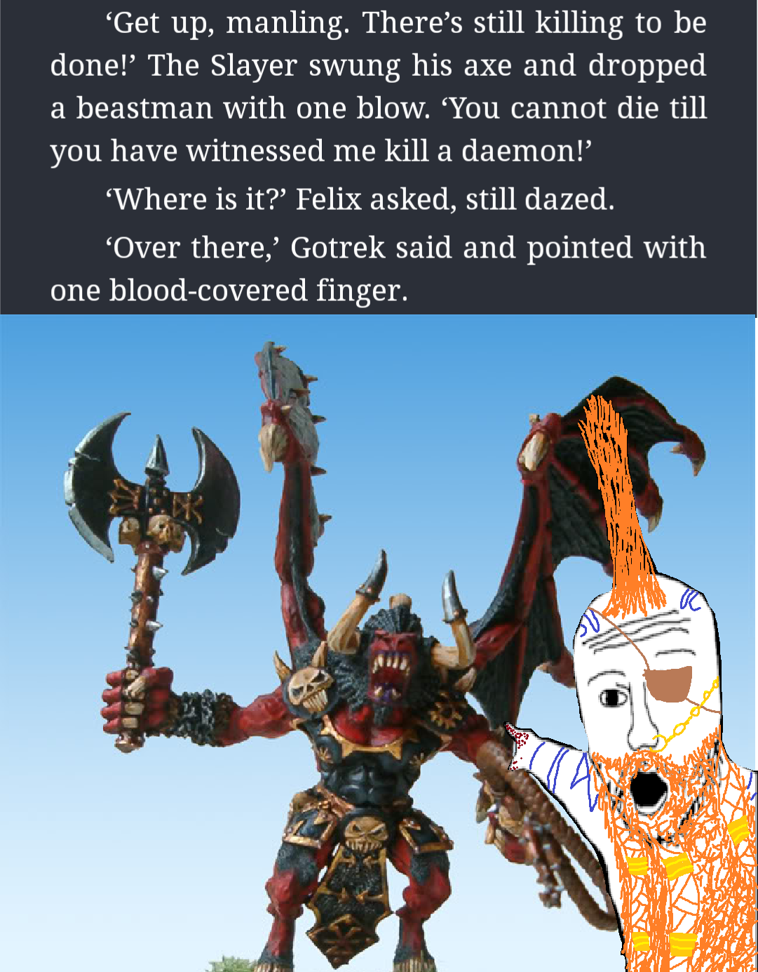 >>97862848>It's too late. I've already depicted you as the seething Bretonnian cuckold, and myself as the smug post-nut Beastlord