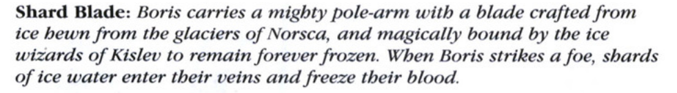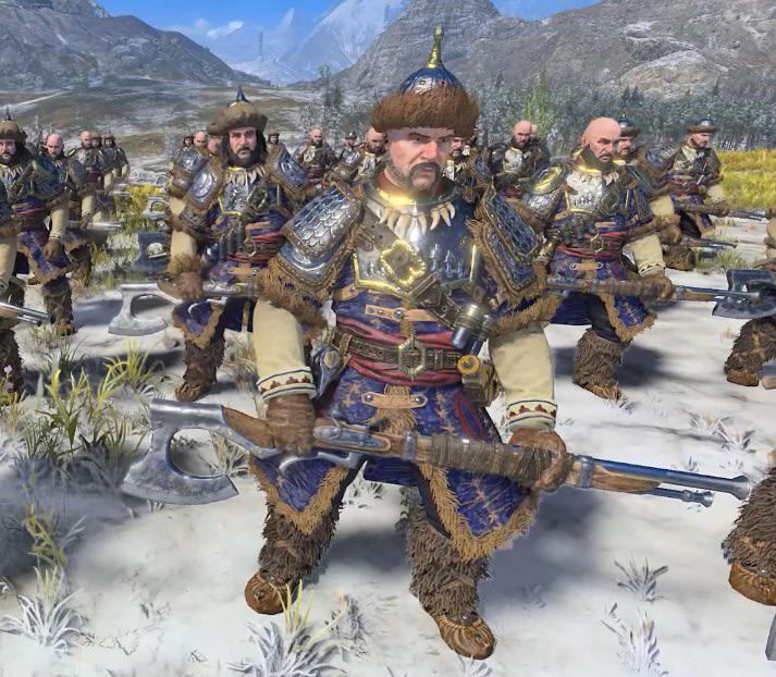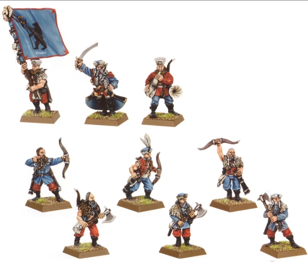 >>97863504They were written to be an ally to an Empire army, but if you want to run a lot of Kossars instead of State Troops, you can have Kislev be the main army and ally in some Empire stuff like a cannon or two.Can run Bear Cavalry if you want to hobby them, just use the Demigryph statblock from 8th.ALso, I agree with >>97862572 that the axes shouldn't count as great weapons. Maybe something like Wolf Hammers that Teutogen Guard use. (+2 Strength on charge, otherwise treat like Halberds)Incidentally, if you ever wanted to run Armoured Kossars, the Teutogen Guard rules should be a good match.Just sayin' cause Kislev has what? Four units total and one generic hero, plus Katarin and Boris.