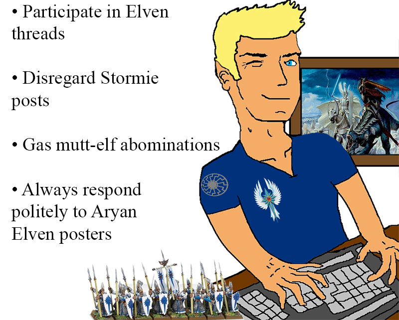 >>97864269>Why would you buy into high elvesWhite man's army. Like how beastmen appeal to brown rapists.