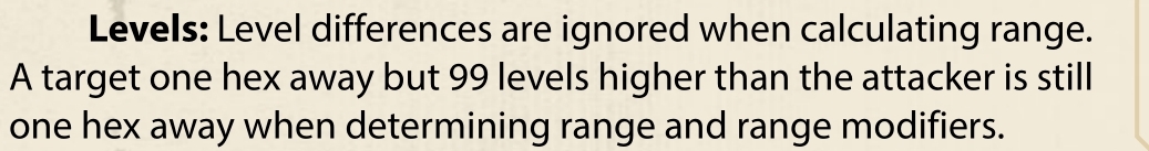 >>97861402Levels affecting range was not a thing in older rules either. Almost every edition words range exactly the same, telling you to count the hexes and that's it.