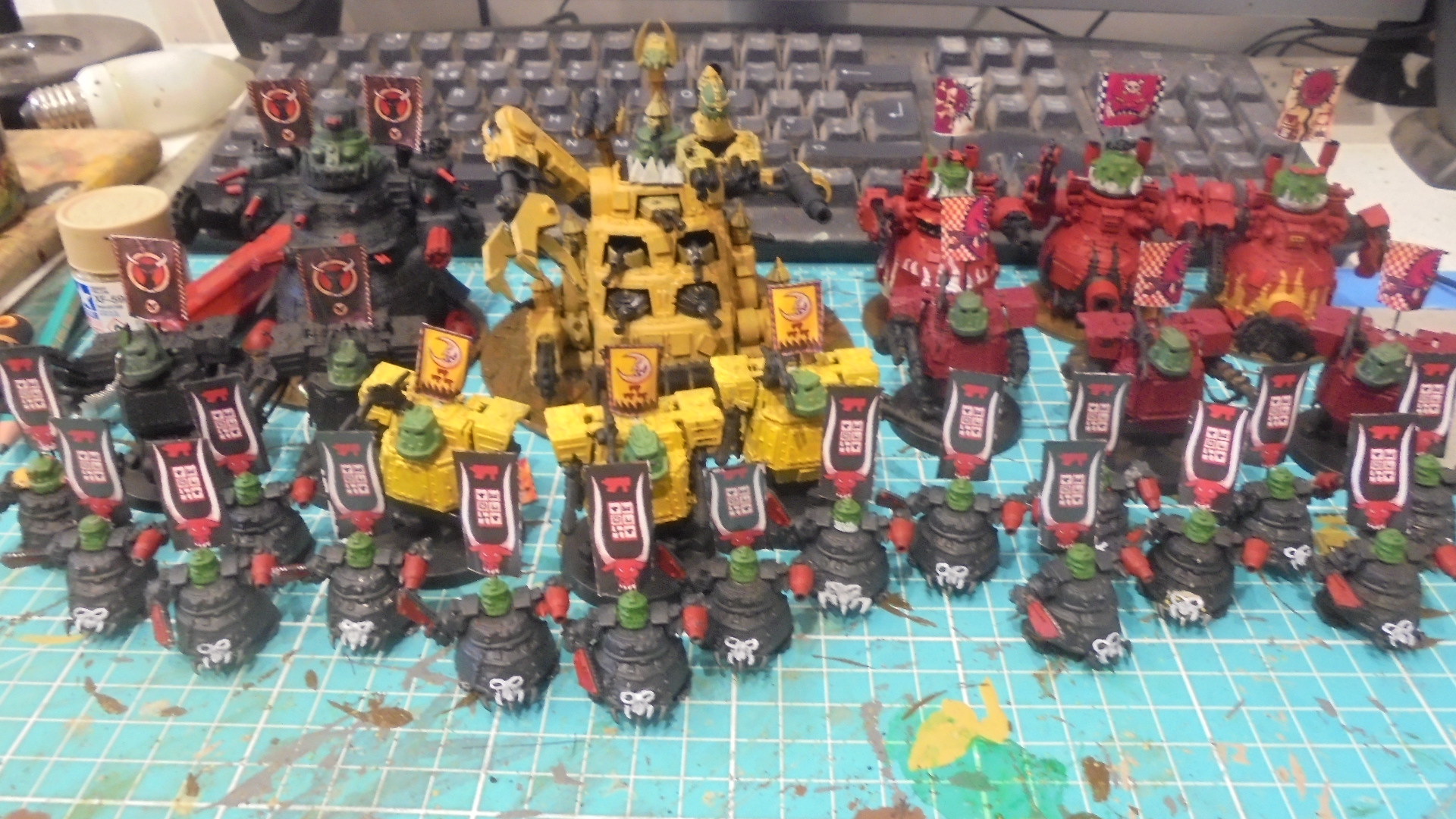 >>97856687Been occasionally painting up my ork gargant mobs. Because GW no longer supports Epic, half is bulk bargains from ebay, the rest from 3rd party manufacturers that fit Havnt played in years and don't really expect to anytime soon, but it's nice to work on them occasionally..