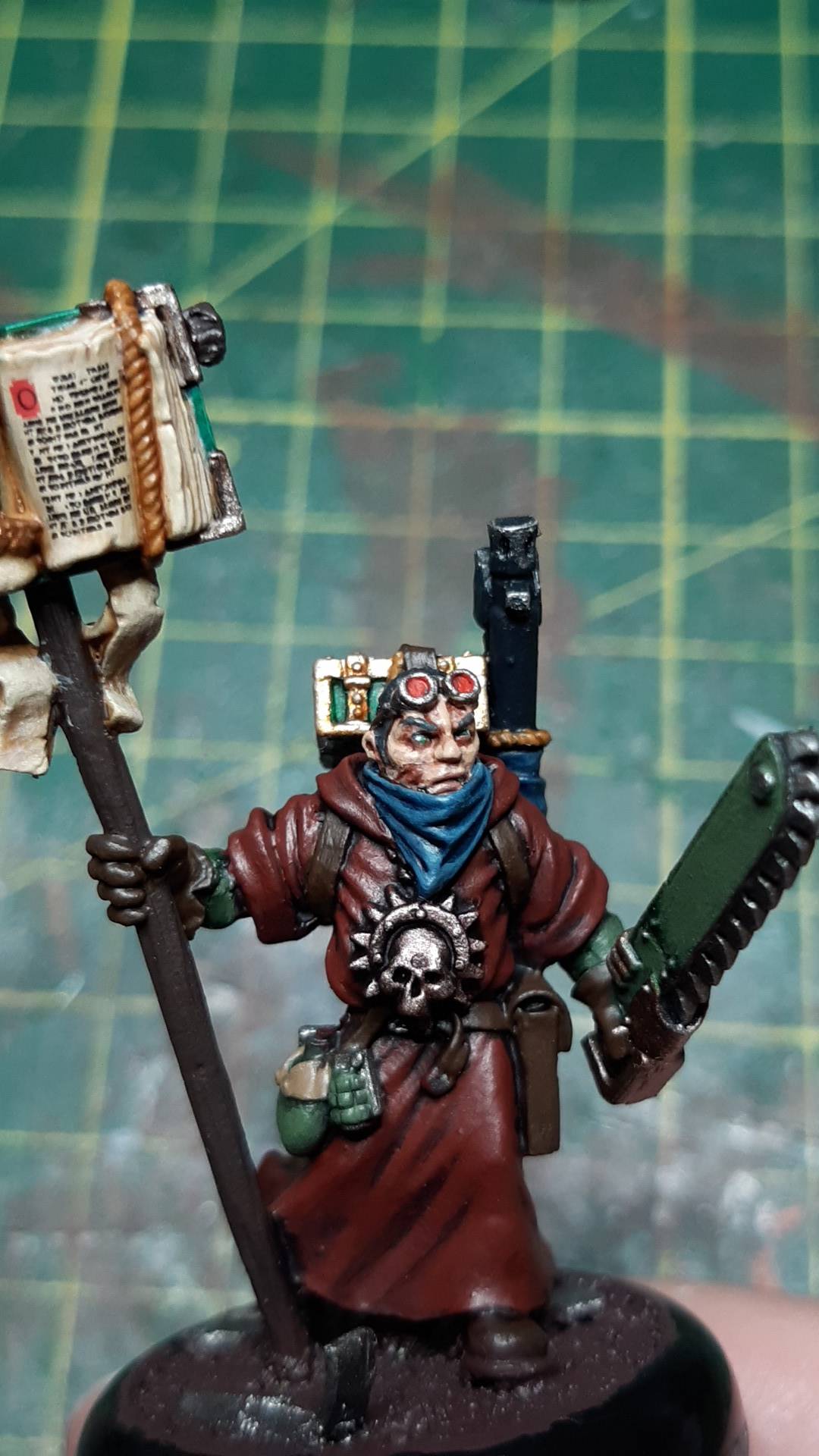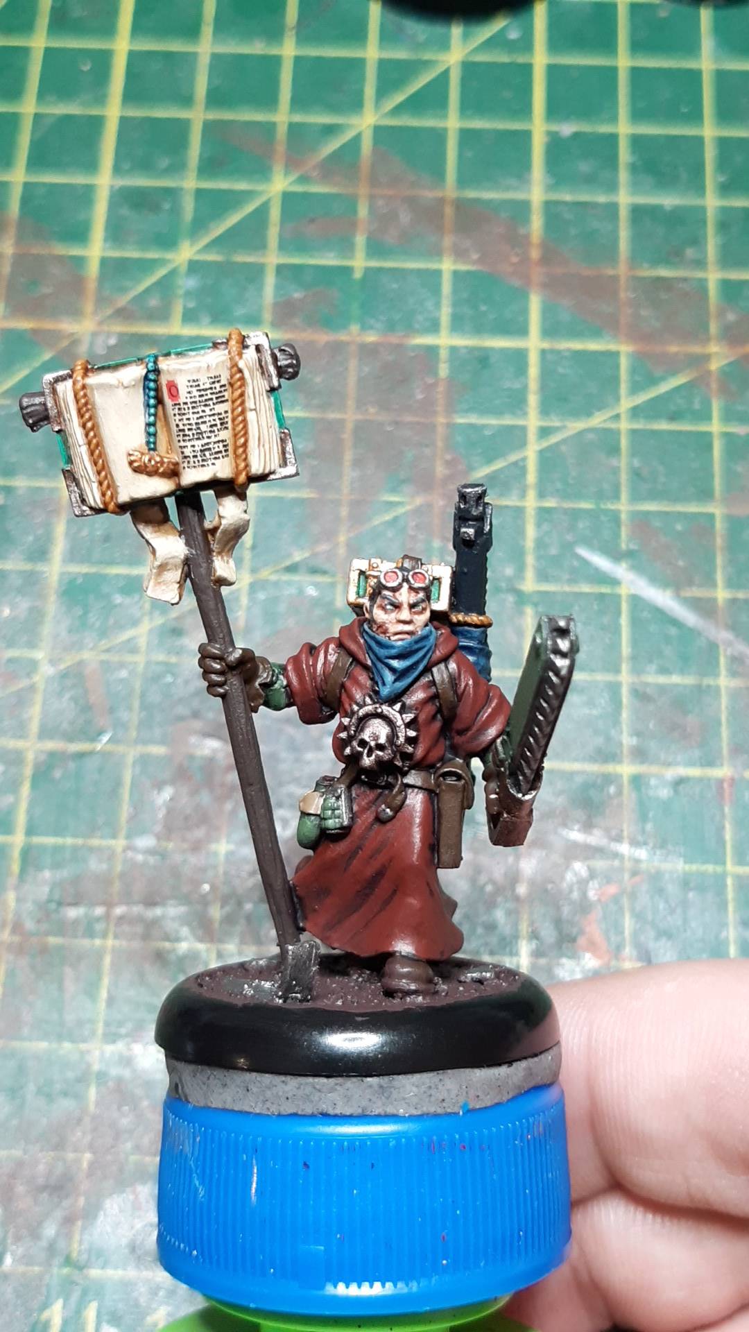 >>97864697Next is my Missionary, love these figures, I have a few copies of this one, one I bought myself and 2 more I inherited from a friend, I've also got the missionary with the plasmagun and bionic arm, he's cool as fuck. This missionary I'm showing you isn't quite finished yet either, he needs some more detailing on his book and scrolls(the text on the book is from the old witch hunters transfer sheet) and to finish off his base. A few angles of this one, I'm quite pleased with it!1/4