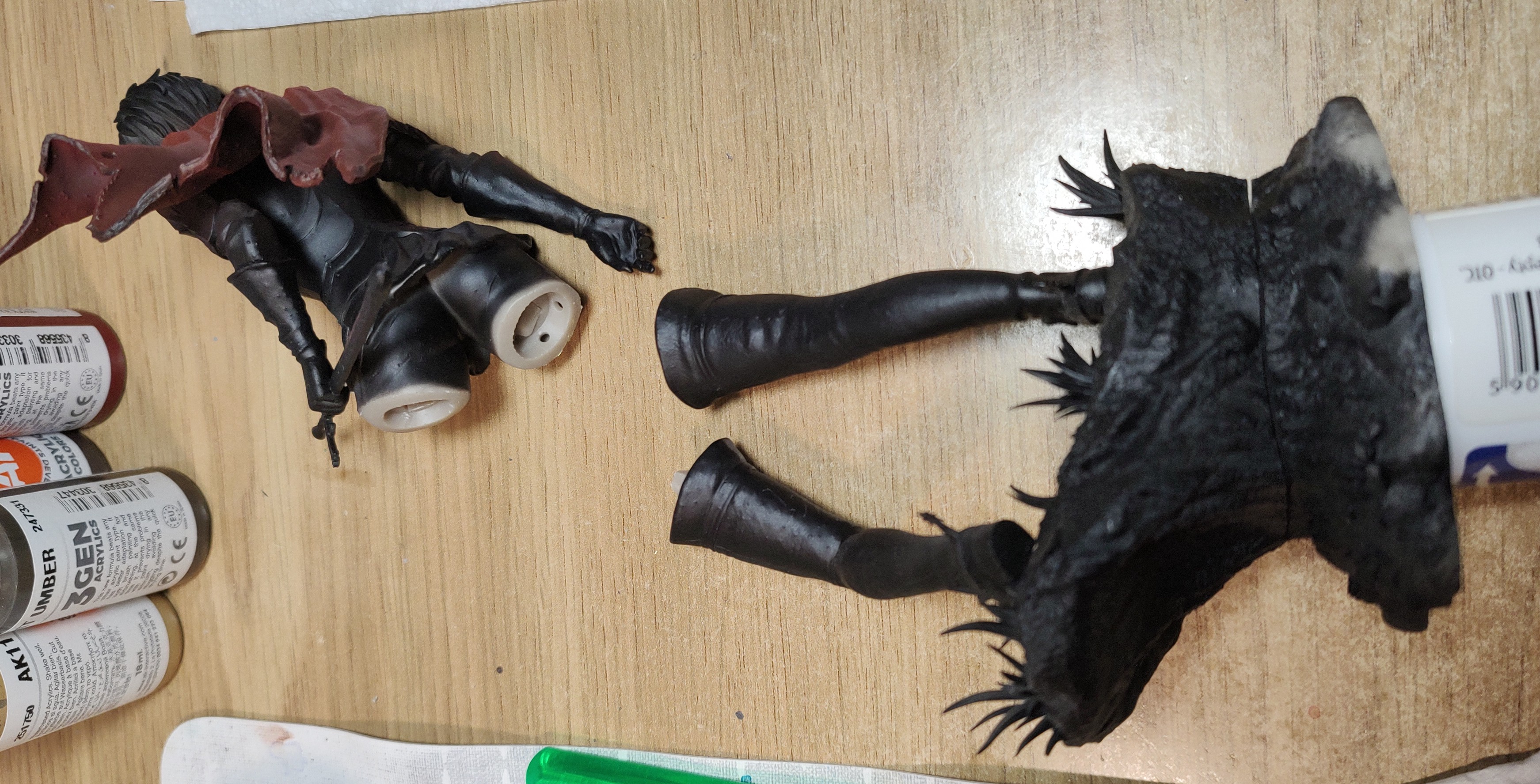 >try to get better with airbrush, pick up that Casca 3D print I already primed months ago>time to change color, try what Vince showed since anons on /WIP/ told me to not flush by spraying out content like H&S videos show>cup empty, nothing seems to be still present after using that squeeze bottle>bubble back, large amount of paint is pushed back>okay, flush again the same way, bubble back again>another large amount of paint>repeat 4 times, still the same, it's like endless reservoir of fucking paint out of 5 drops originally>accidentally knock out 3D print, it breaks in half, right at where her legs connect, including those connecting pegsI want to die.