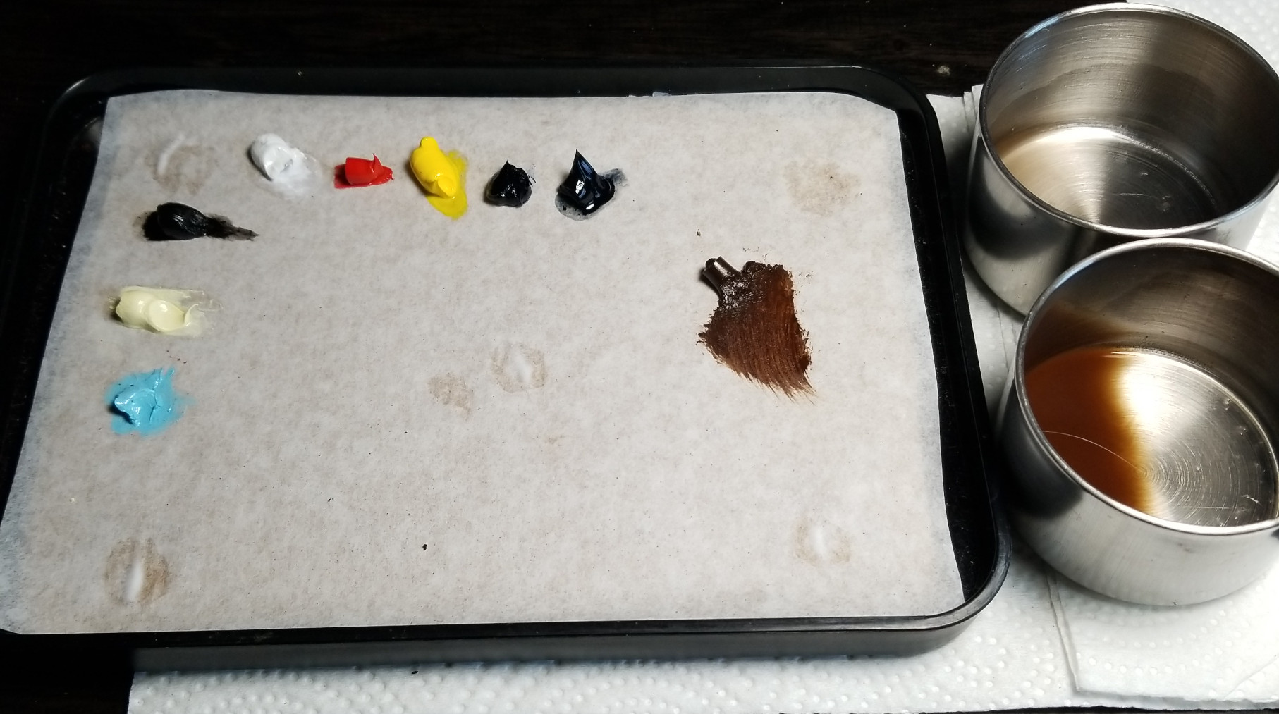 >>978612101. Cardboard still absorbs the excess oil through the parchment paper.2. Thinned oils won't dry out as quickly so I don't need to constantly thin while working with them. Once I get it the right consistency they stay that way for a while.3. I can reuse the same piece of cardboard two or three times, just peel the parchment paper off and tack a new piece down with some elmers glue.4. Since the paint doesn't dry as quickly I can cover the tray with some foil and pop it into the freezer to save the paints for another day, massively slows the dry time. Take it out about 20 minutes before to warm back up and I'm good to go, good for if I need to take a break I can go back to the still wet mini the following day and finish up while keeping my mixes workable. Little things I've figured out while playing around with them.