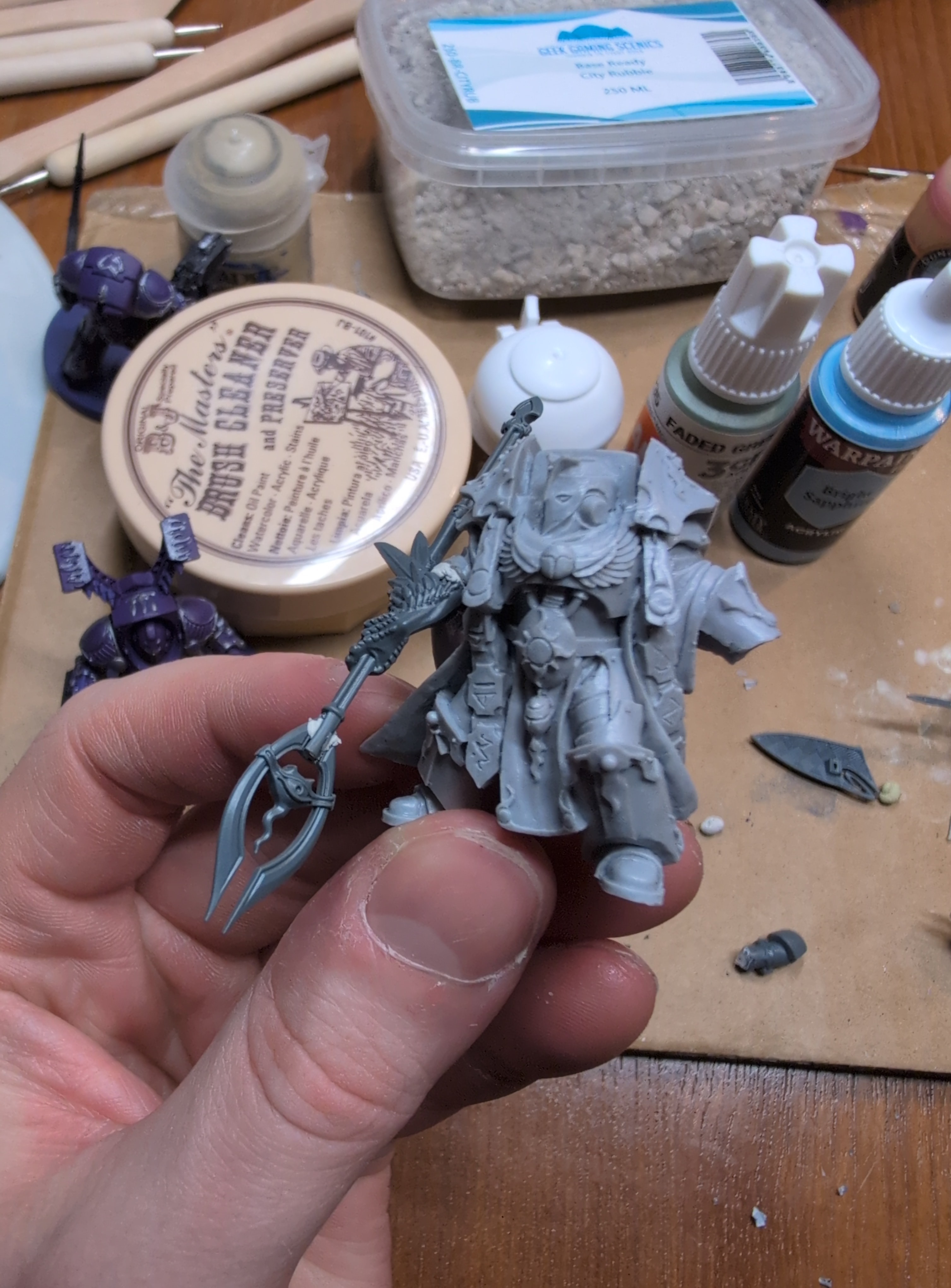 Kitbashing a terminator sorceror for the /40kg/ collage (hopefully the pics come out the right way this time)