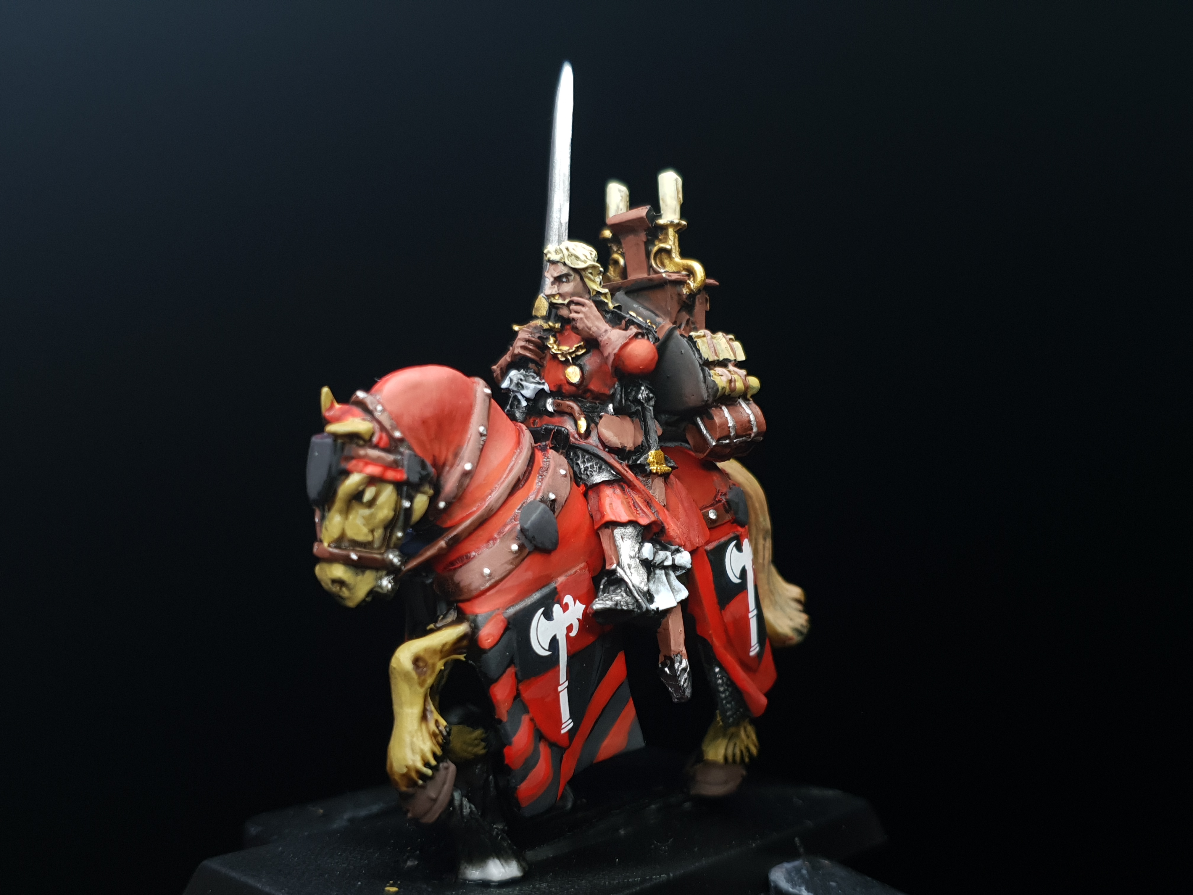 Finally getting around to basing my Chorfs.OSM Duergar general, Cavern floor tiles and skulls from Hirst Arts,Bull from Ral Partha(?), and Wings made from card stock and wire.