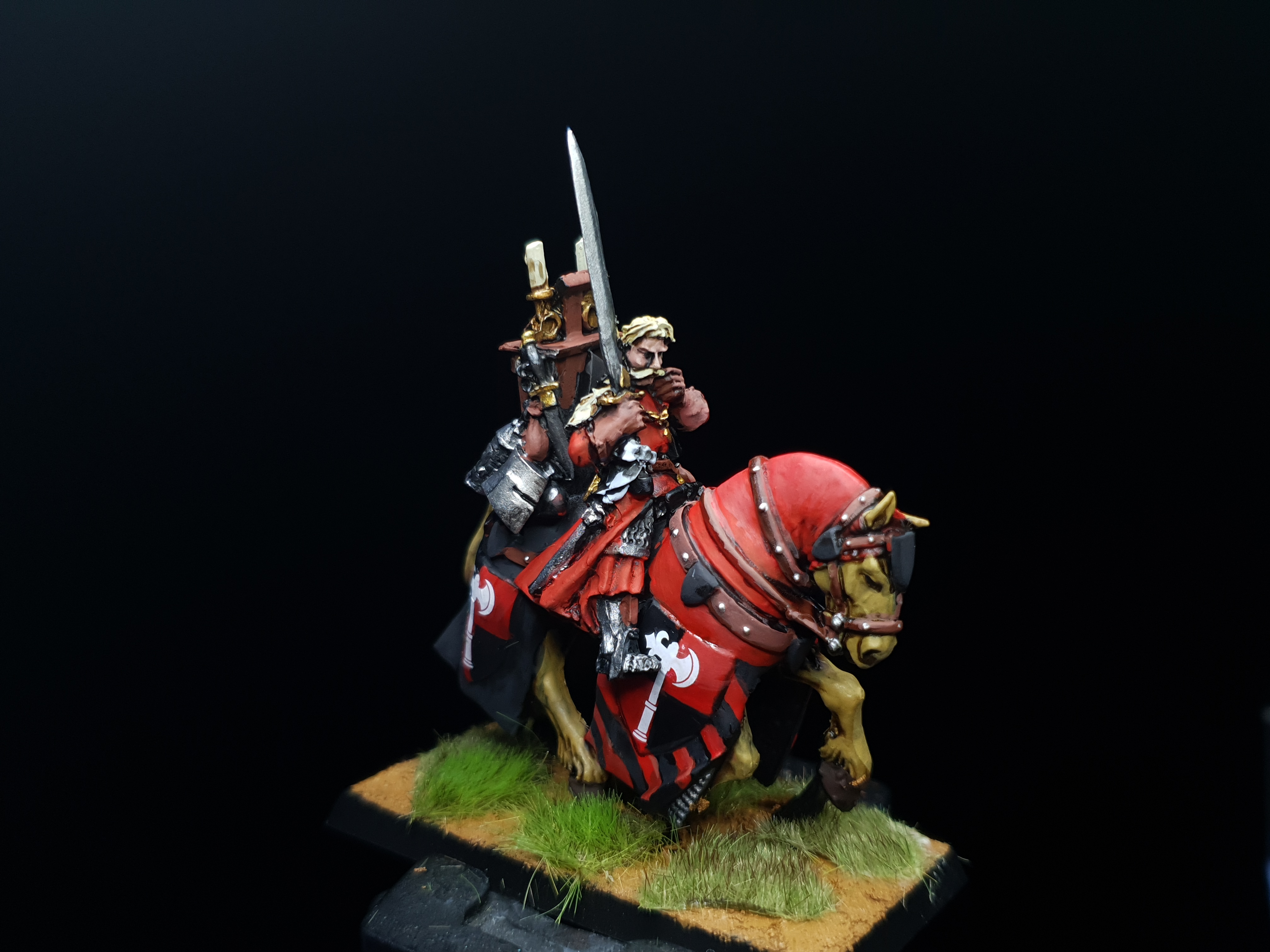 Finally getting around to basing my Chorfs.OSM Duergar general, Cavern floor tiles and skulls from Hirst Arts,Bull from Ral Partha(?), and Wings made from card stock and wire.